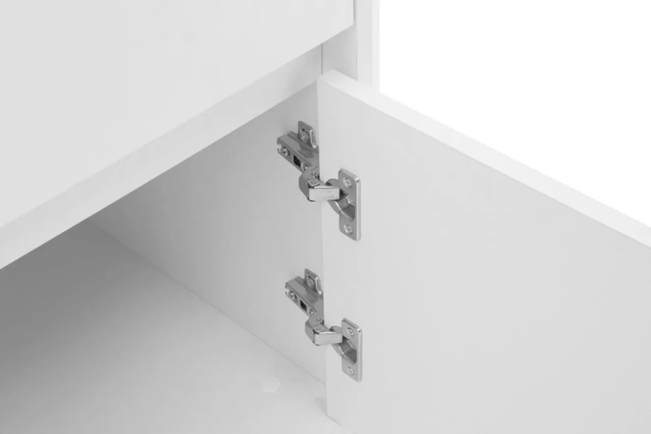 - Korpus niniejszego modelu został wykonany z płyty meblowej, wykończonej laminatem w białym kolorze