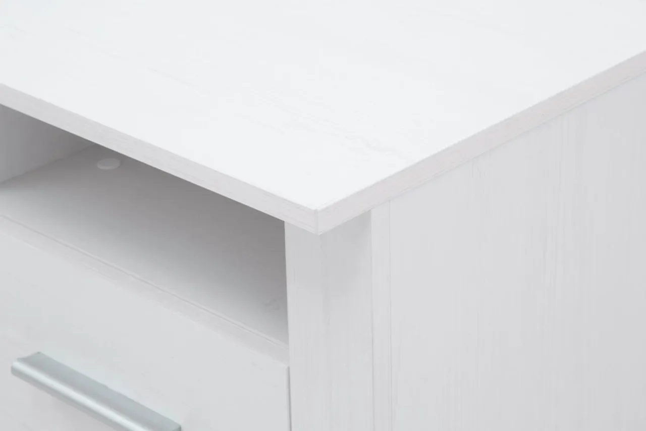 - Biurko wykonano z laminowanej płyty meblowej w kolorze bielonej sosny andersen.