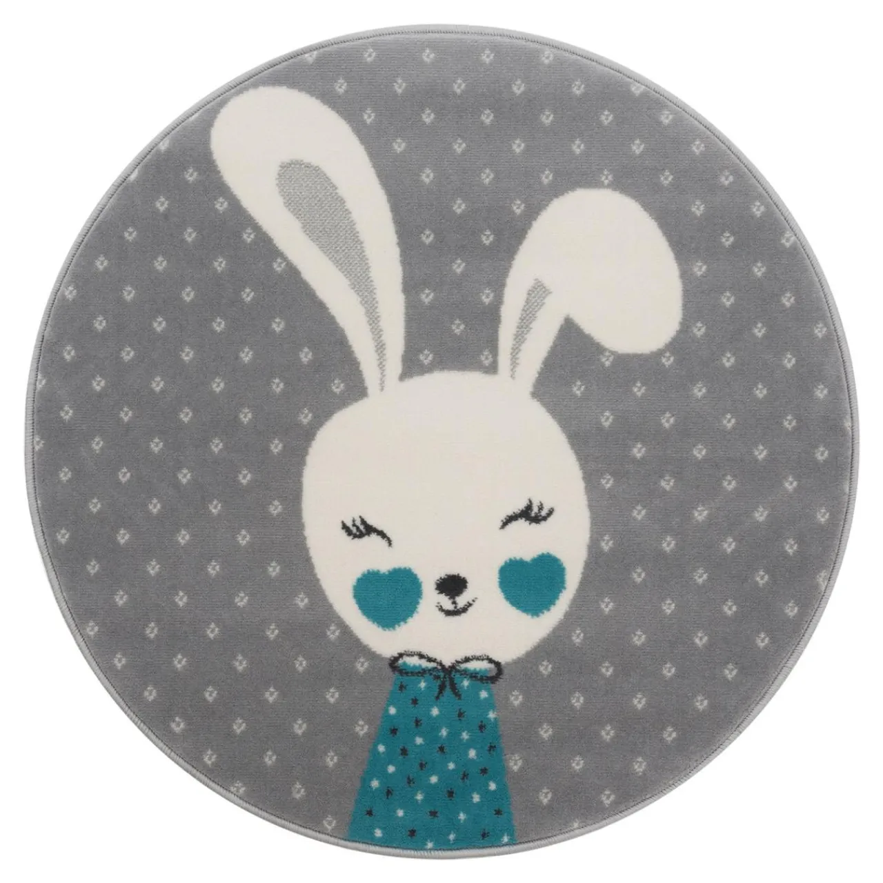 Do takiej aranżacji idealnie wpasuje się dywan dziecięcy z królikiem w turkusowym sweterku.