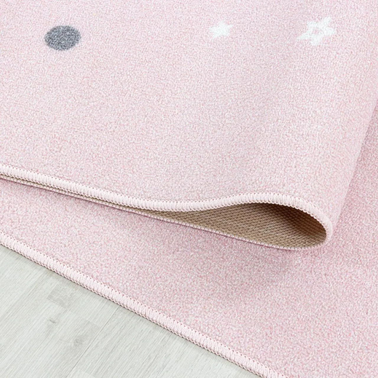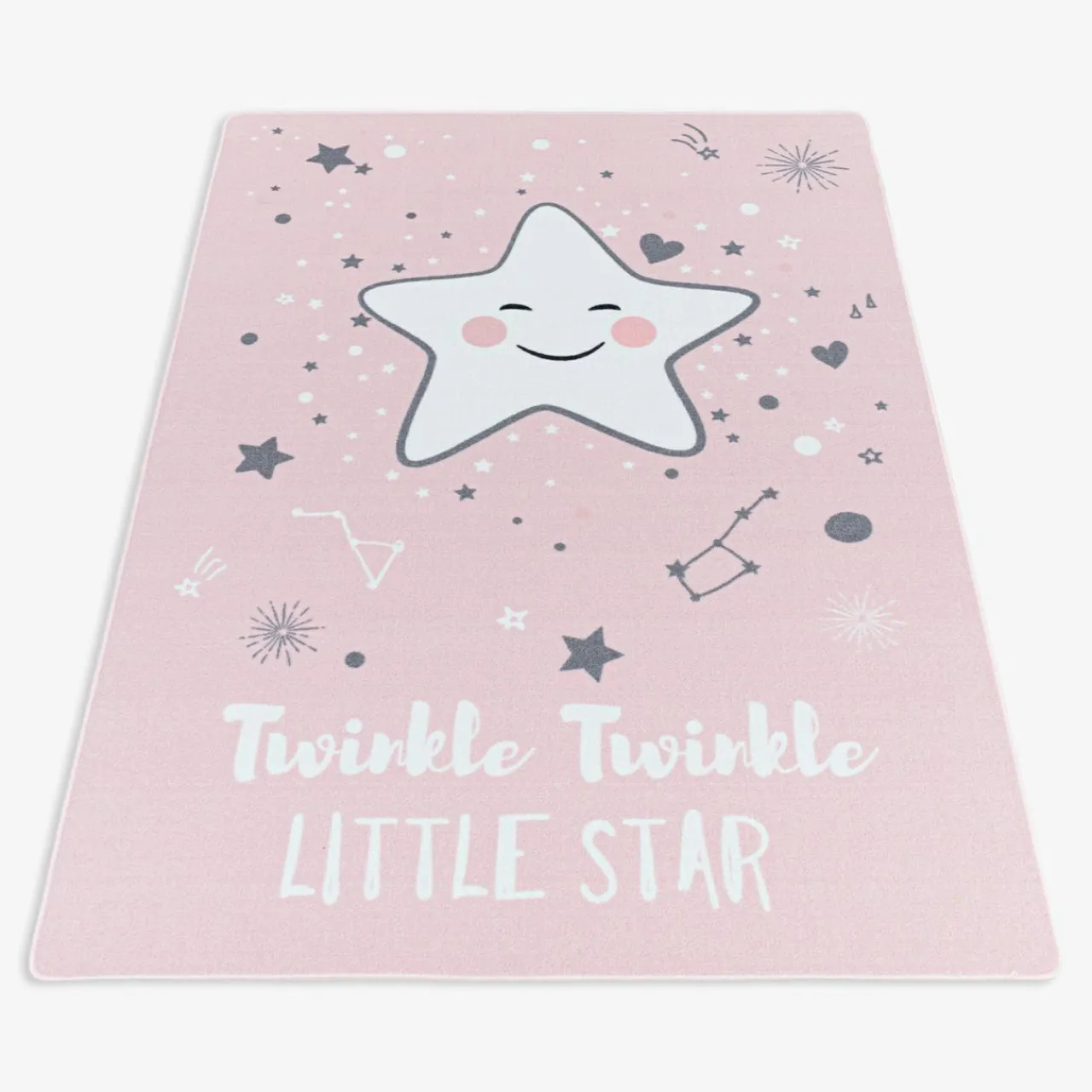 Twoje dziecko marzy o tym, aby przenieść się do bajkowego świata? Teraz to możliwe. Zdecyduj się na zakup różowego dywanu PLAY z motywem uśmiechniętej gwiazdki. Uroczy napis „Twinkle twinkle little star” odwołuje się do słów kołysanki, która w polskiej wersji językowej brzmi: „Mrugaj, mrugaj gwiazdko ma„.