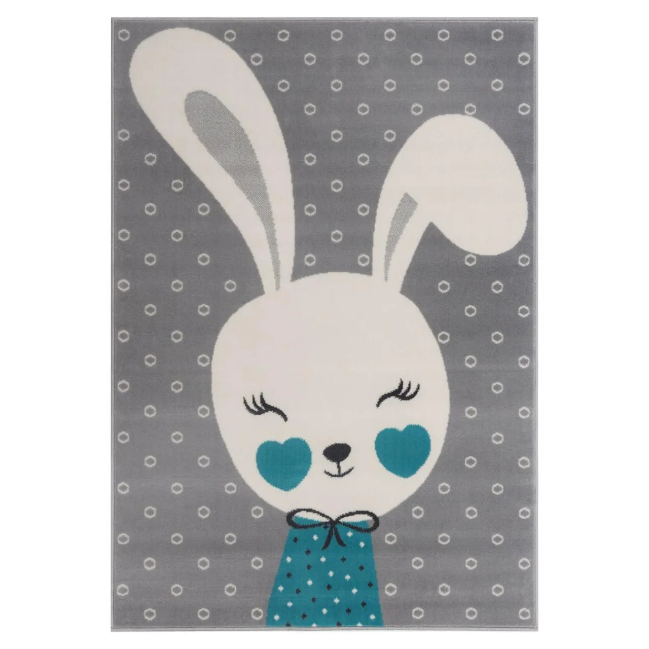 Do takiej aranżacji idealnie wpasuje się dywan dziecięcy z królikiem w turkusowym sweterku.