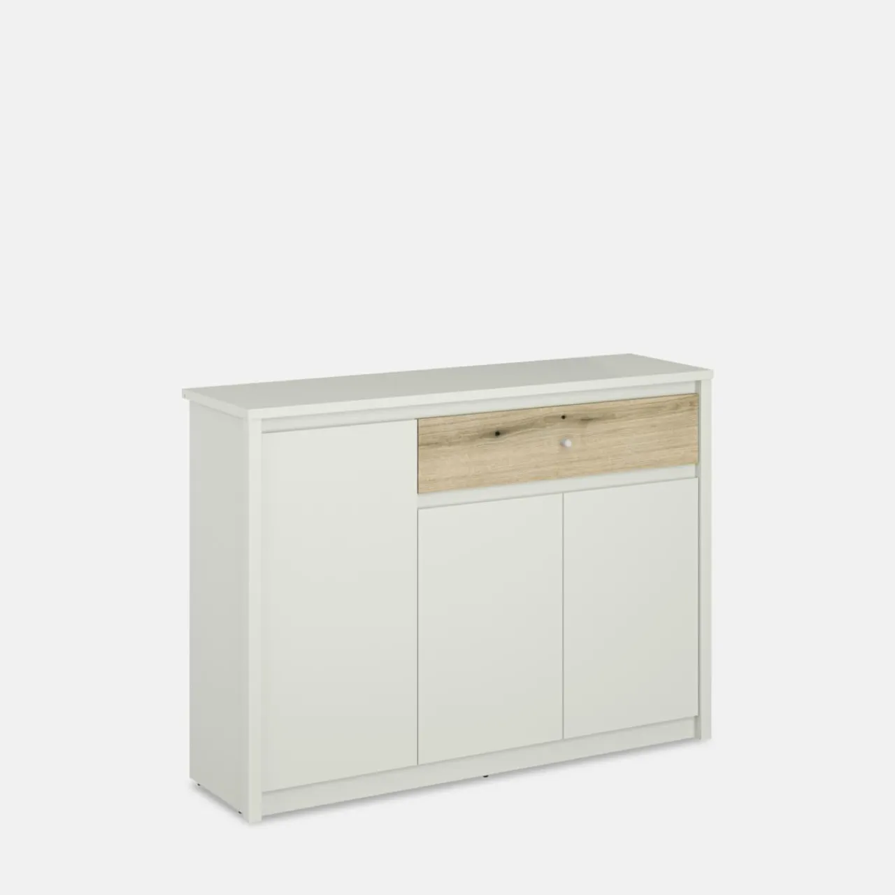 Komoda KARIN sprawdzi się zarówno w jadalni, ale również pokoju dziennym i sypialni. W 3 szafkach przechowasz różne, większe przedmioty — naczynia, tekstylia domowe czy pościel.