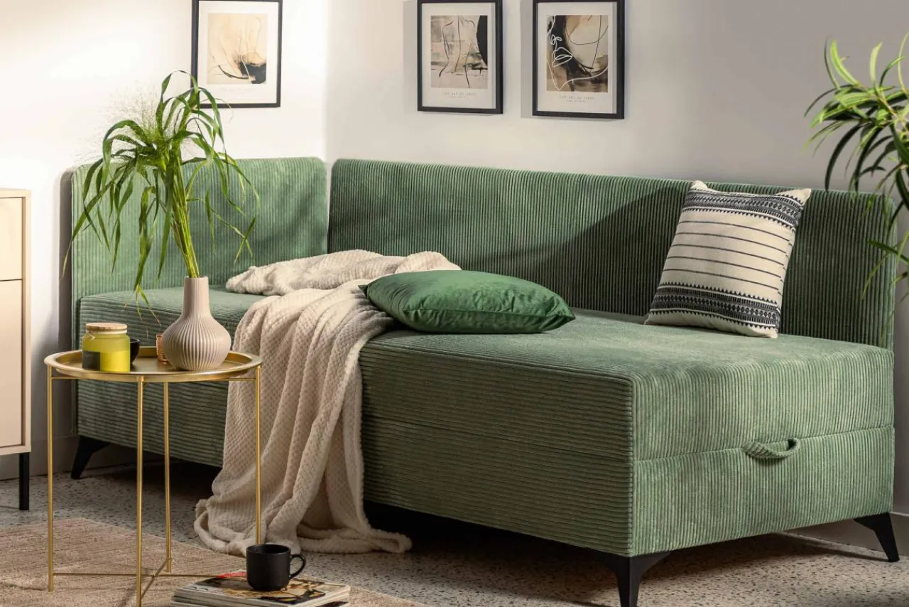 - Zabudowane boki tapczanu ochronią ścianę przed zabrudzeniami.
