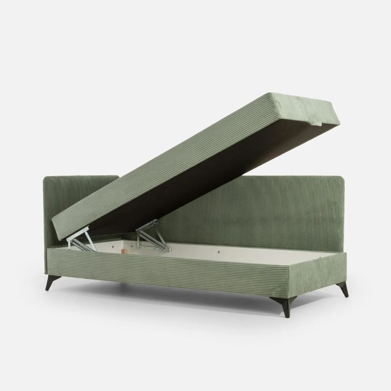 - Duży pojemnik w środku tapczanu dadzą Ci przestrzeń na pościel, koce i inne domowe tekstylia.