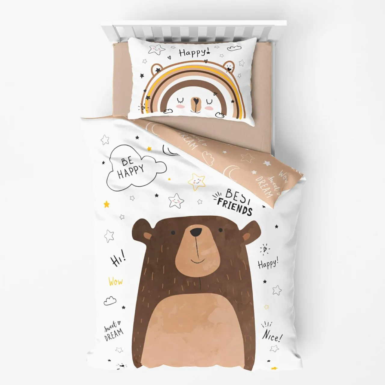 - Pokój dziecka to przestrzeń, w której rodzą się marzenia. Przestrzeń, która powinna być bezpieczna i miła dla oka. Pościel z motywem niedźwiadka wpisze się w te założenia. Dominują w niej kolorystyczne wątki beżów, brązów i bieli. Są to barwy sprzyjające wyciszeniu i odpoczynkowi.
