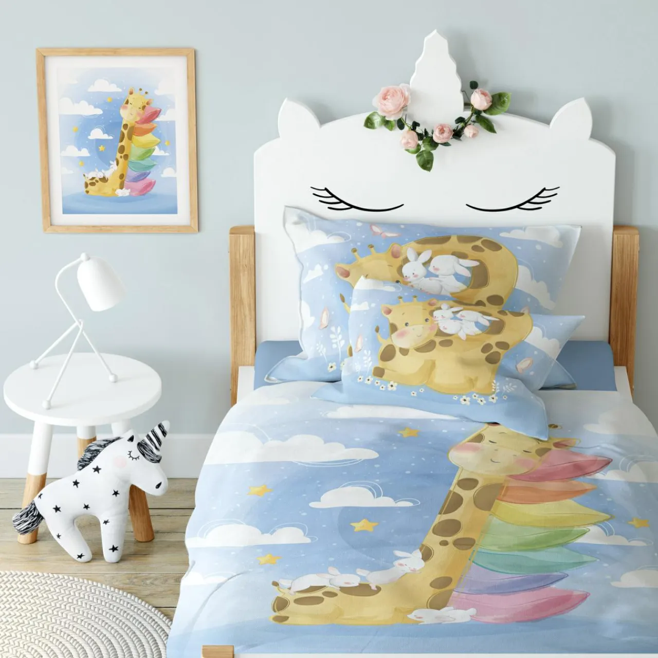 Stwórz sypialnię pełną uroku i beztroski! Bawełniana pościel z kolekcji PRZYTULAKI ŻYRAFA miękko otuli do snu i pomoże dziecku szybciej zasnąć.