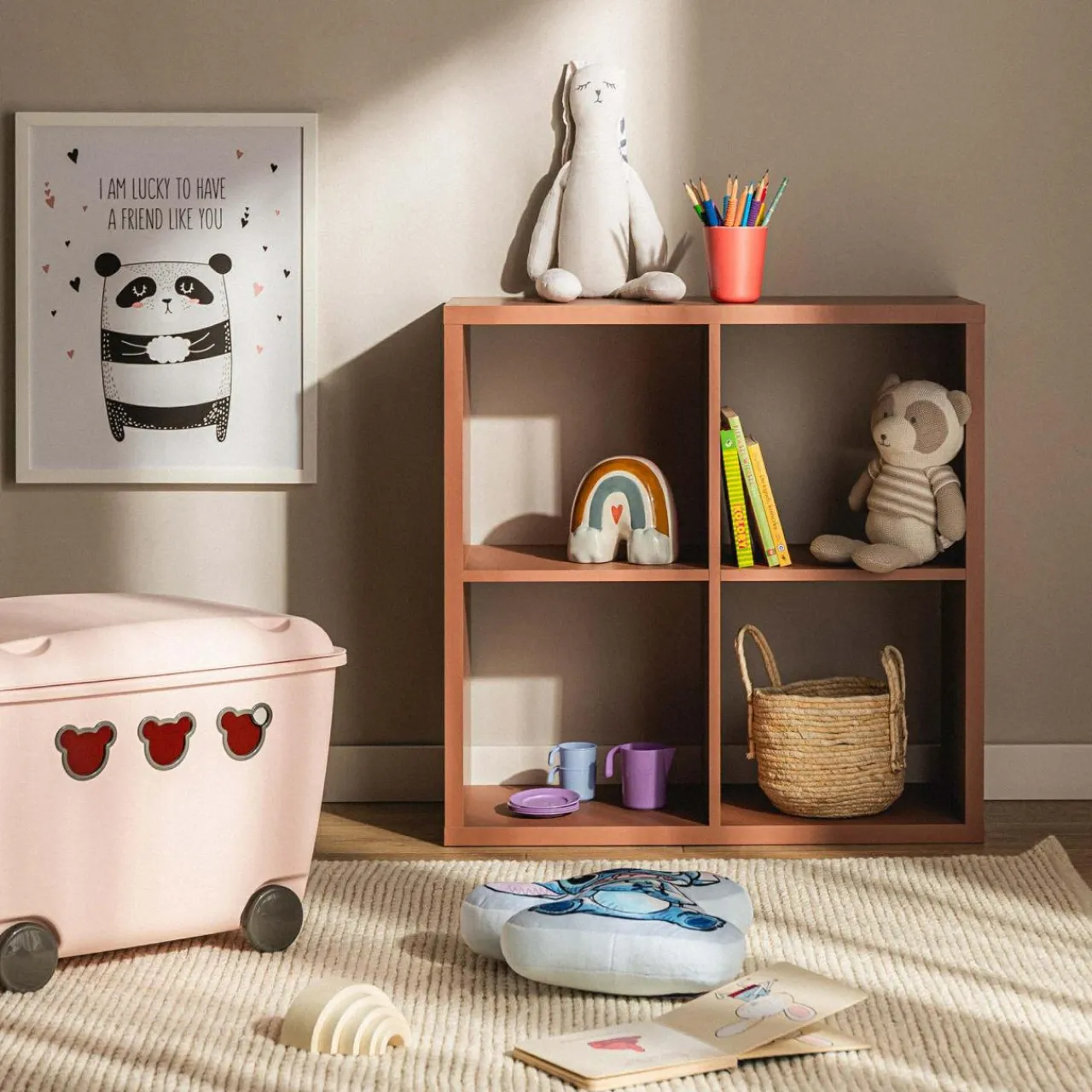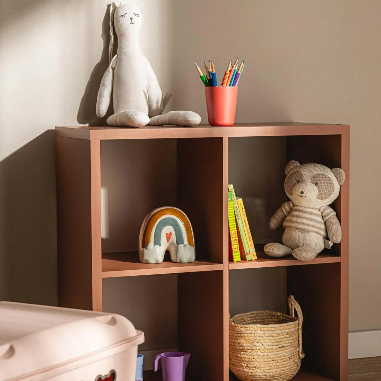 Regał MAURO dzięki kwadratowej budowie pomieści się w wielu miejscach — na ścianie między pomieszczeniami, skośnych ścianach czy w kącie pokoju.