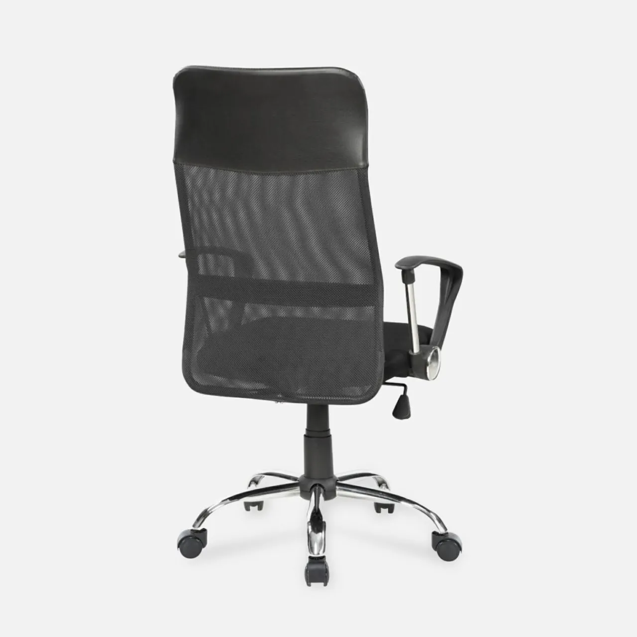 - Siatka mesh na oparciu jest przewiewna, co zapewni komfort pracy w cieplejsze dni.
