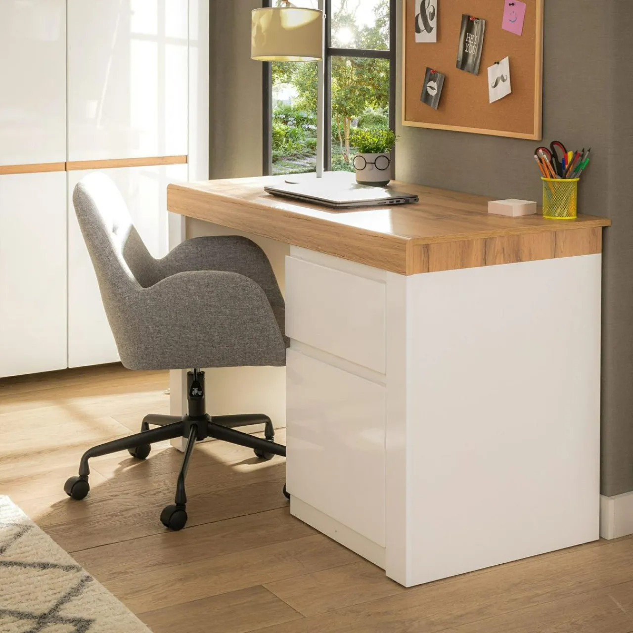 Biurko TAURUS II dzięki szerokiemu blatu oraz bocznej zabudowy z szafką i szufladą, sprawdzi się zarówno do nauki, jak i wieczornego serialu.