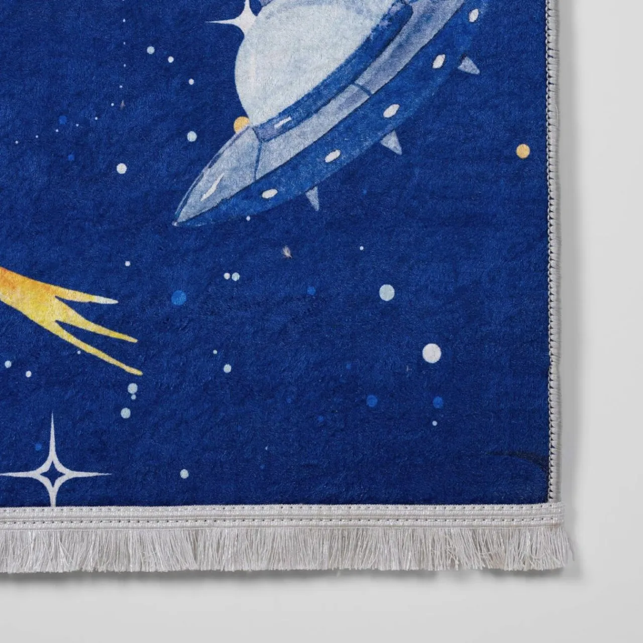 Chcesz stworzyć swojemu dziecku przyjemne miejsce do zabawy? Ozdób pokój malucha wyjątkowym pokryciem podłogowym: dywanem SPAC PETRA z wizerunkiem kosmonautów w przestrzeni kosmicznej. Pobudzi fantazję Twojego dziecka i zachęci je do eksplorowania świata.
