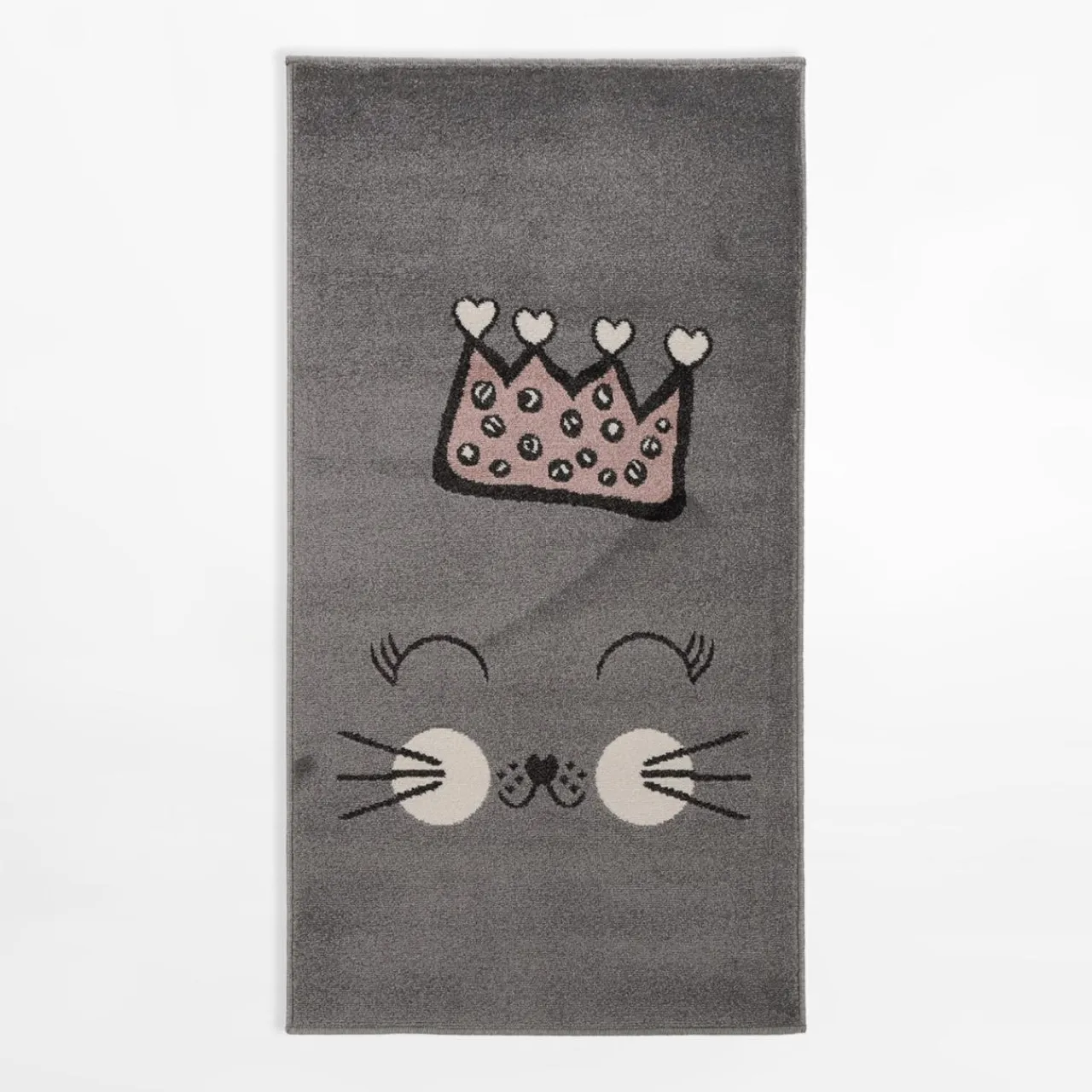 - Kotek w królewskim wydaniu: dywan ma szary kolor, który dobrze komponuje się z różową koroną.