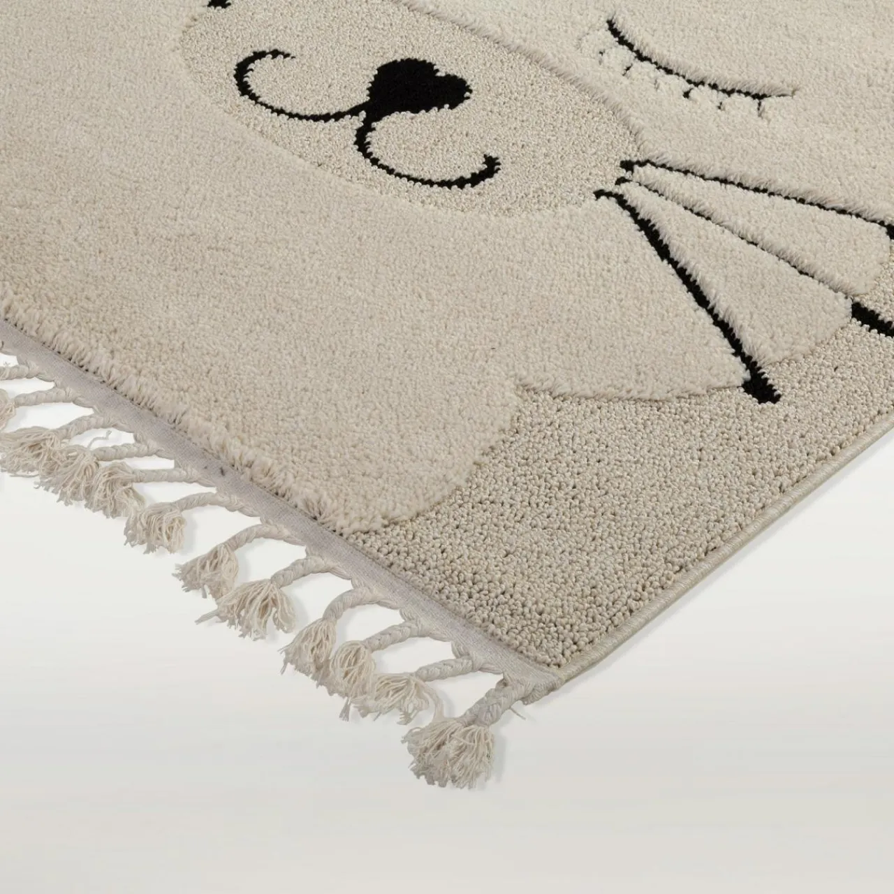 Zaproś do pokoju dziecka przytulny i miły w dotyku dywan KINDER z wizerunkiem kota. Stonowana kolorystyka utrzymana w gamie beżów wprowadzi do pomieszczenia spokój. Twój maluch zatopi się w kojącej aranżacji: minimalistycznej, ale „miękkiej” w odbiorze.