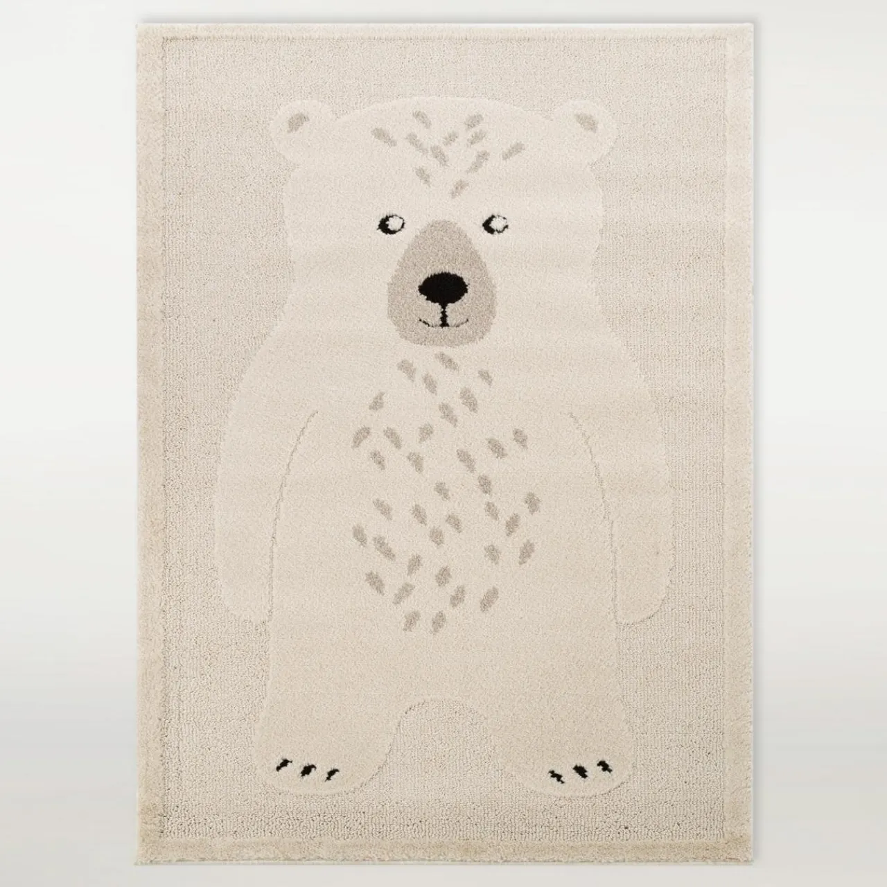 Chcesz sprawić dziecku radość? Uzupełnij aranżację jego pokoju o miły w dotyku dywan KINDER z wizerunkiem niedźwiedzia. Pokrycie podłogowe jest w miłym dla oka beżowym kolorze. Wprowadzi do wnętrza przytulny i ciepły klimat. Będzie pasował zarówno do pokoju chłopca, jak i dziewczynki.