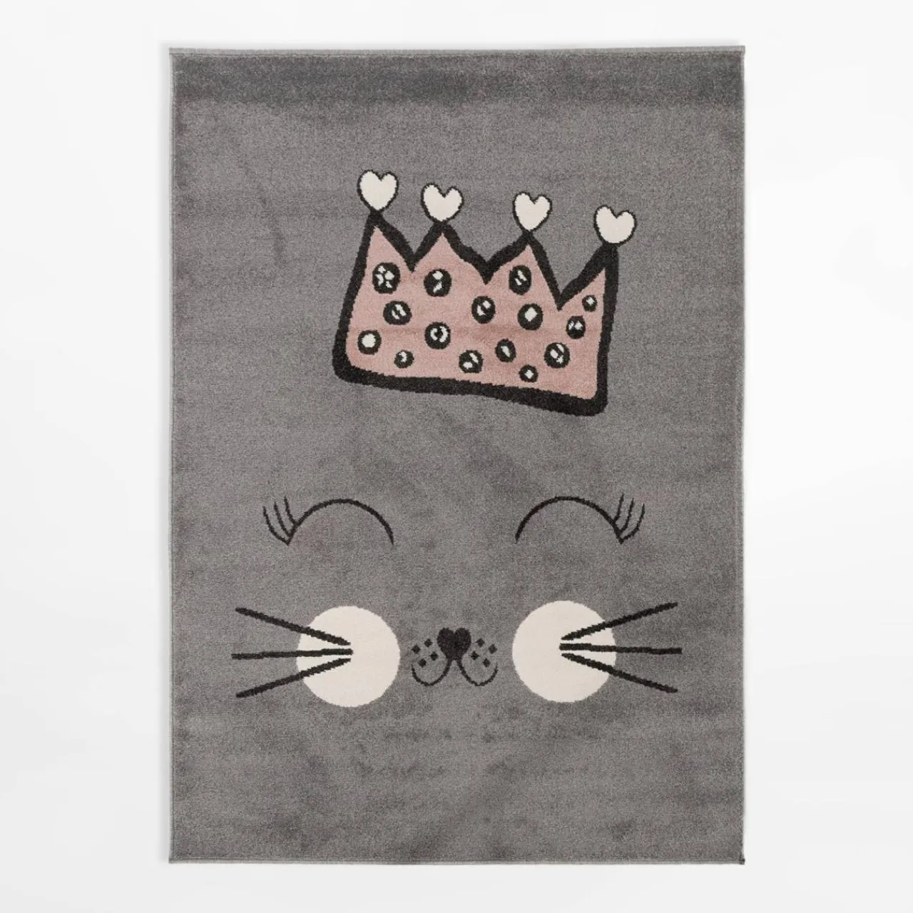 - Kotek w królewskim wydaniu: dywan ma szary kolor, który dobrze komponuje się z różową koroną.