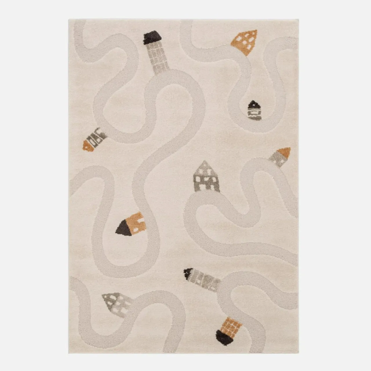 Dywan KIDY daje ciepło i komfort, umożliwiając dziecku bezpieczną zabawę na podłodze. Wzór miasteczka i dróg pobudza kreatywność i inspiruje do wymyślnych przygód z zabawkowymi autkami.