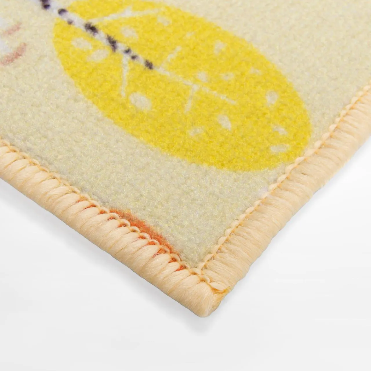 - W składzie znajdziesz 100% poliestru. Dywanik jest odporny na utratę koloru i łatwiej utrzymać go w czystości. To ważne, jeśli położysz go w pokoju dziecięcym.