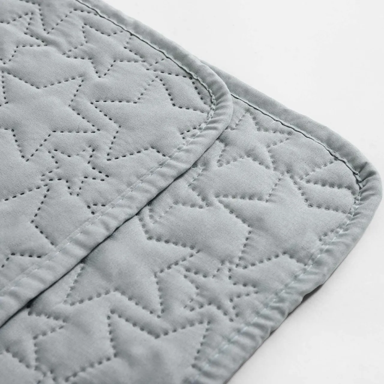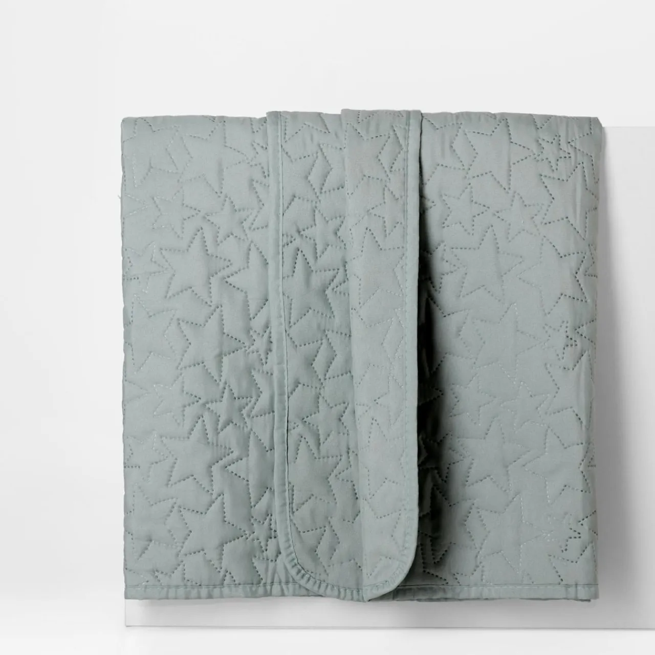 Jasnozielona narzuta na łóżko z kolekcji DABU zwróci uwagę wzorem w gwiazdy. Dekoracja doda wnętrzu przytulnego, relaksującego akcentu.