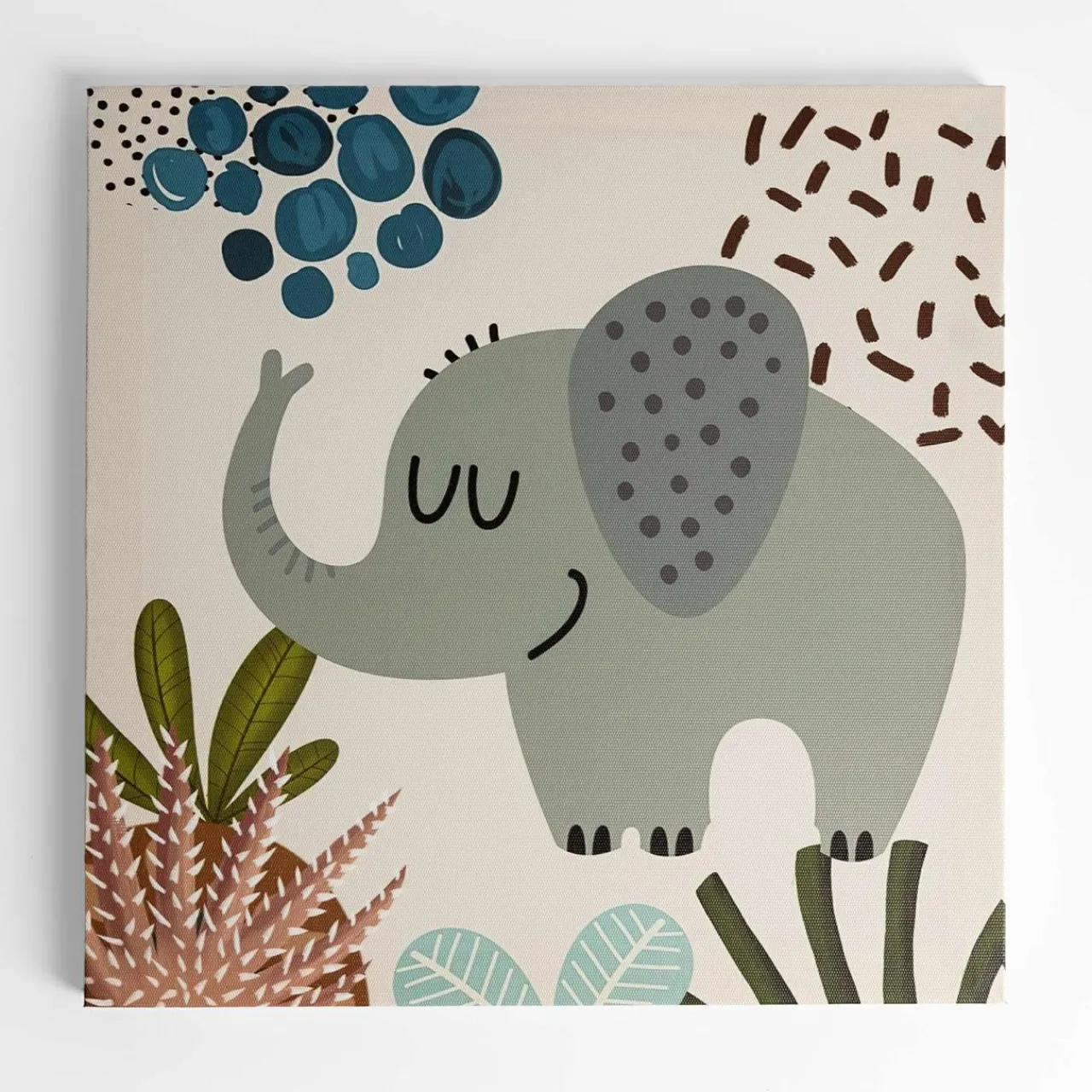 Obraz dla dziecka z grafiką słonia w dżungli zaakcentuje przyjemną, beztroską atmosferę.