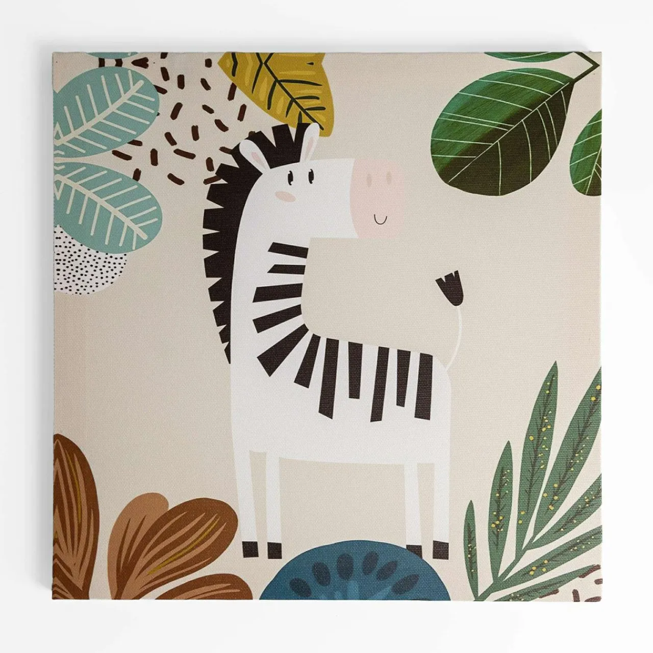 Obraz na płótnie z grafiką zebry w dżungli podkreśli przyjemną i optymistyczną atmosferę.