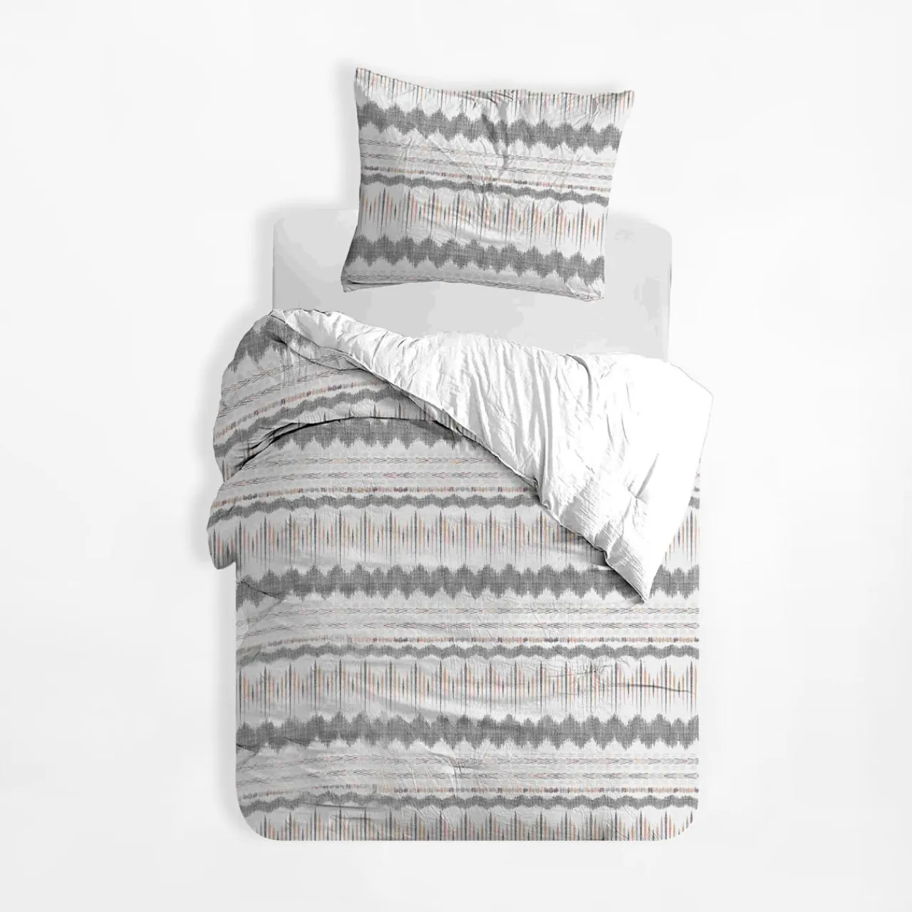 Pościel BOHOO w szaro-pomarańczowe wzory dopełni sypialnię w nowoczesnym stylu.