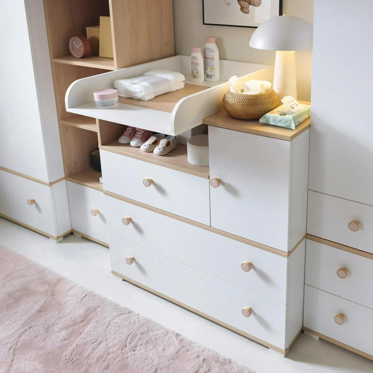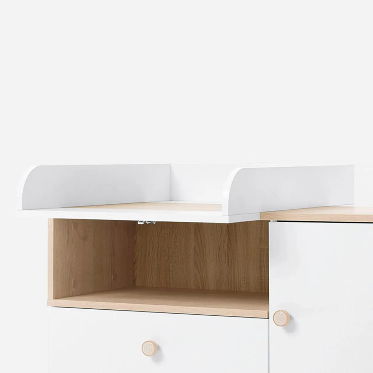 - Wysokie ramy przewijaka tworzą bezpieczną przestrzeń dla dziecka.