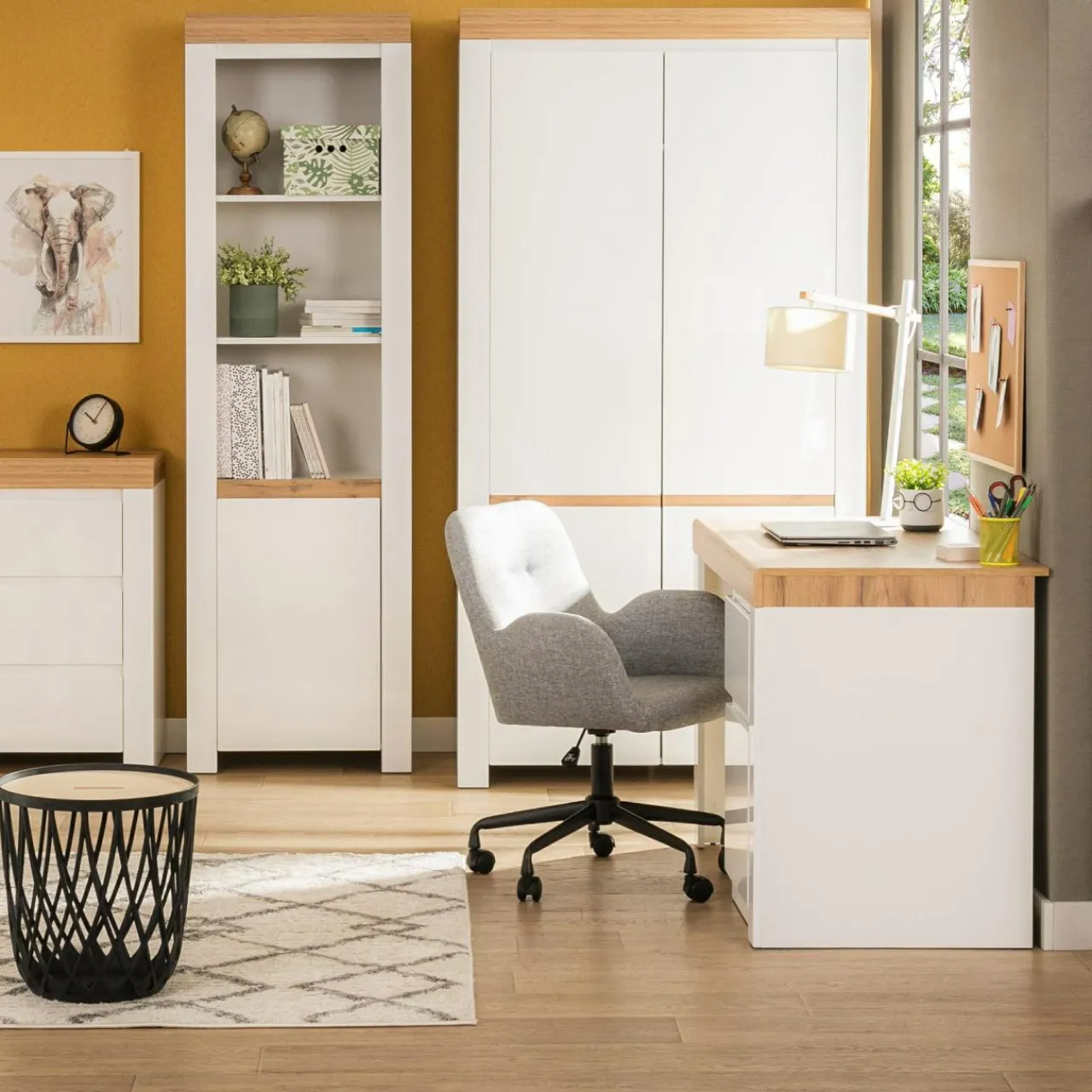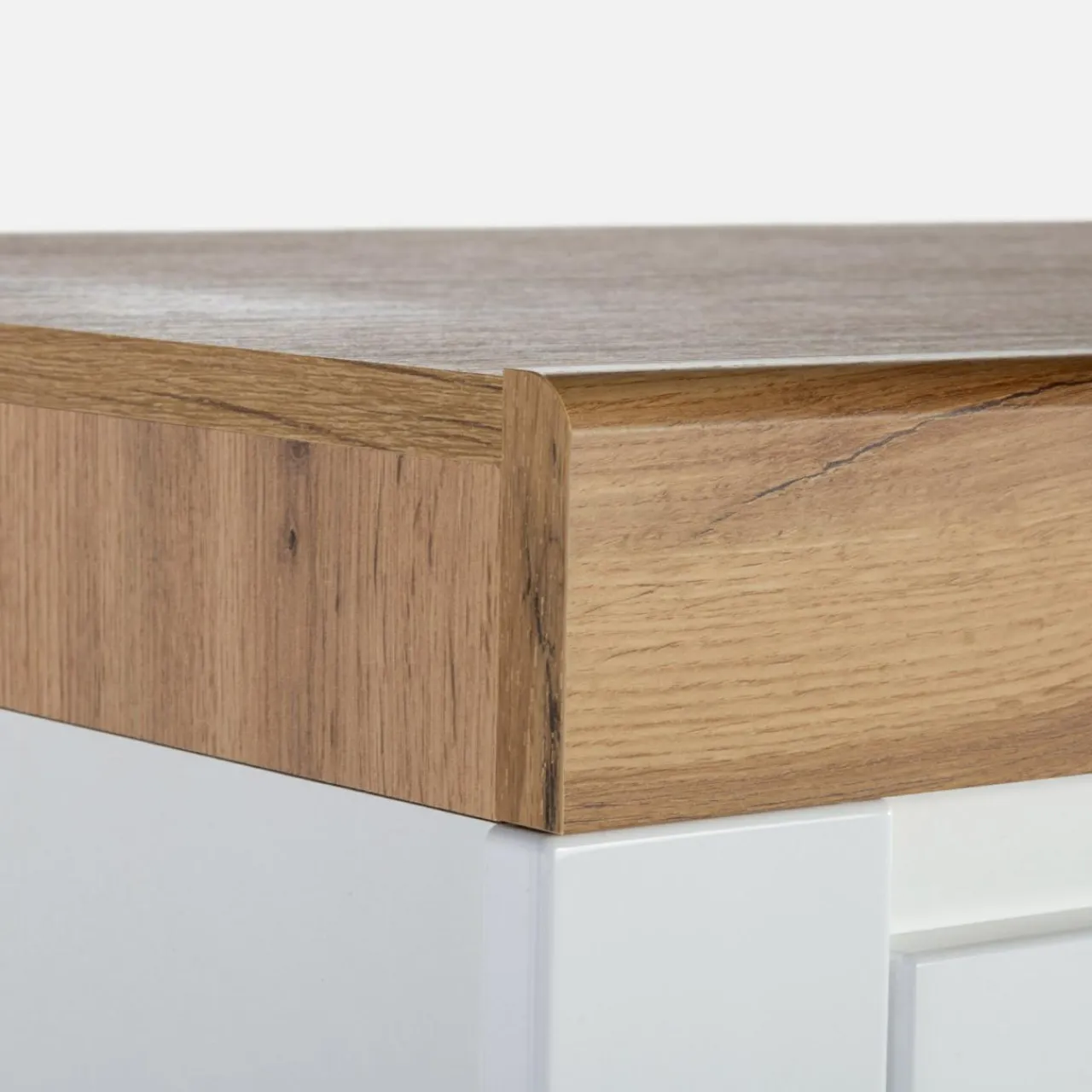 - Elementy w odcieniu dębu wotan posiadają wyczuwalną pod palcami fakturę przypominającą naturalny surowiec. W połączeniu z ciepłym wybarwieniem tworzą przytulną atmosferę.