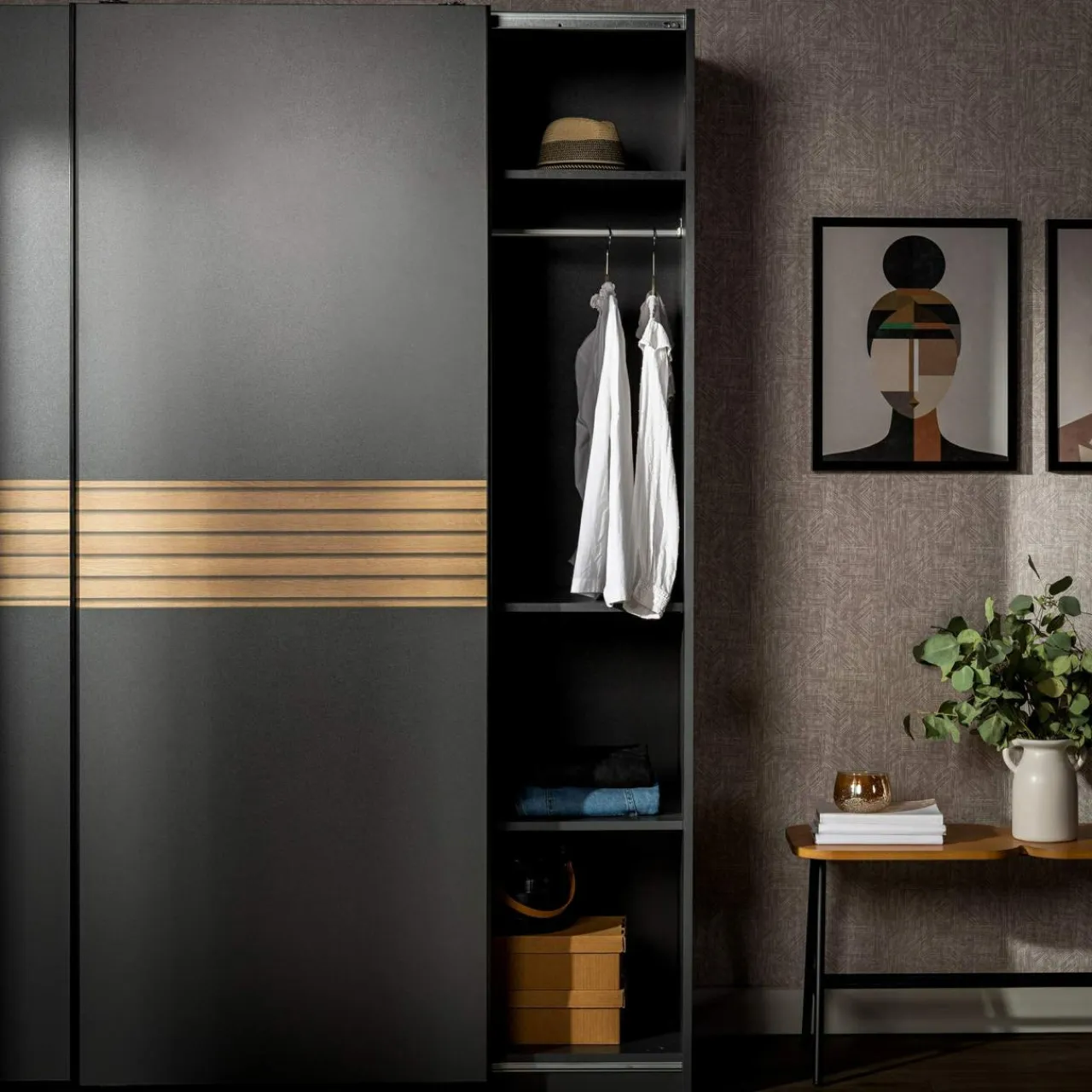 - Prosty wygląd szafy sprawdzi się w minimalistycznym lub nowoczesnym wnętrzu.
