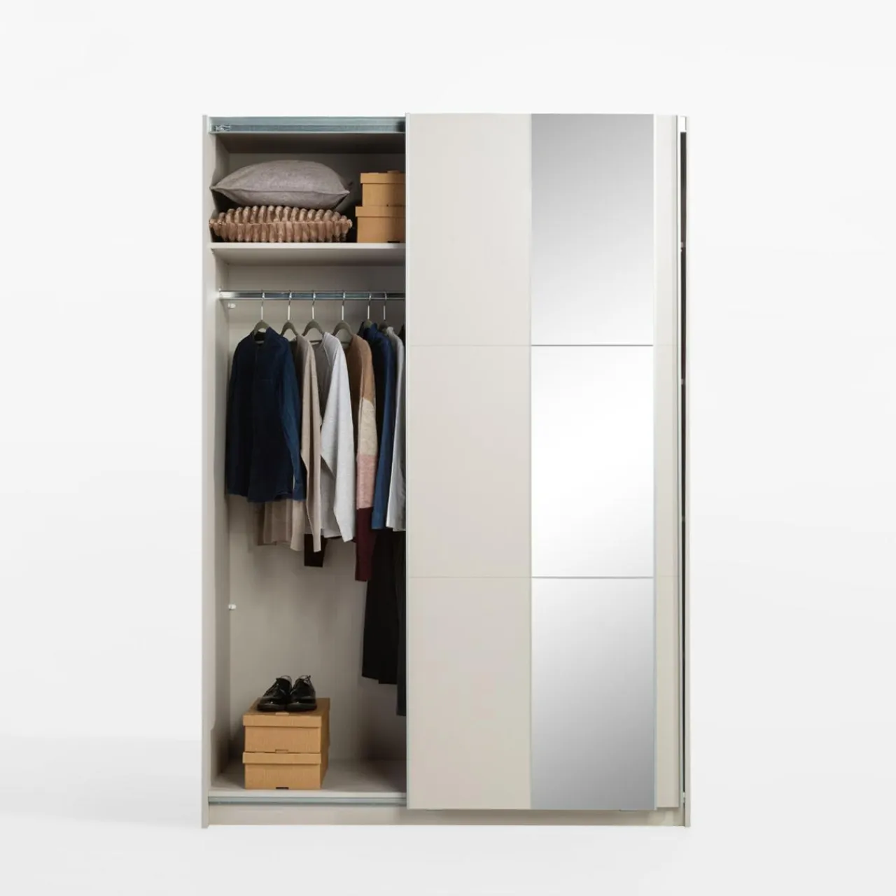 - 1 drążek na odzież wierzchnią i elegancką – miejsce na płaszcze, marynarki, sukienki i koszule – zawsze w zasięgu ręki.