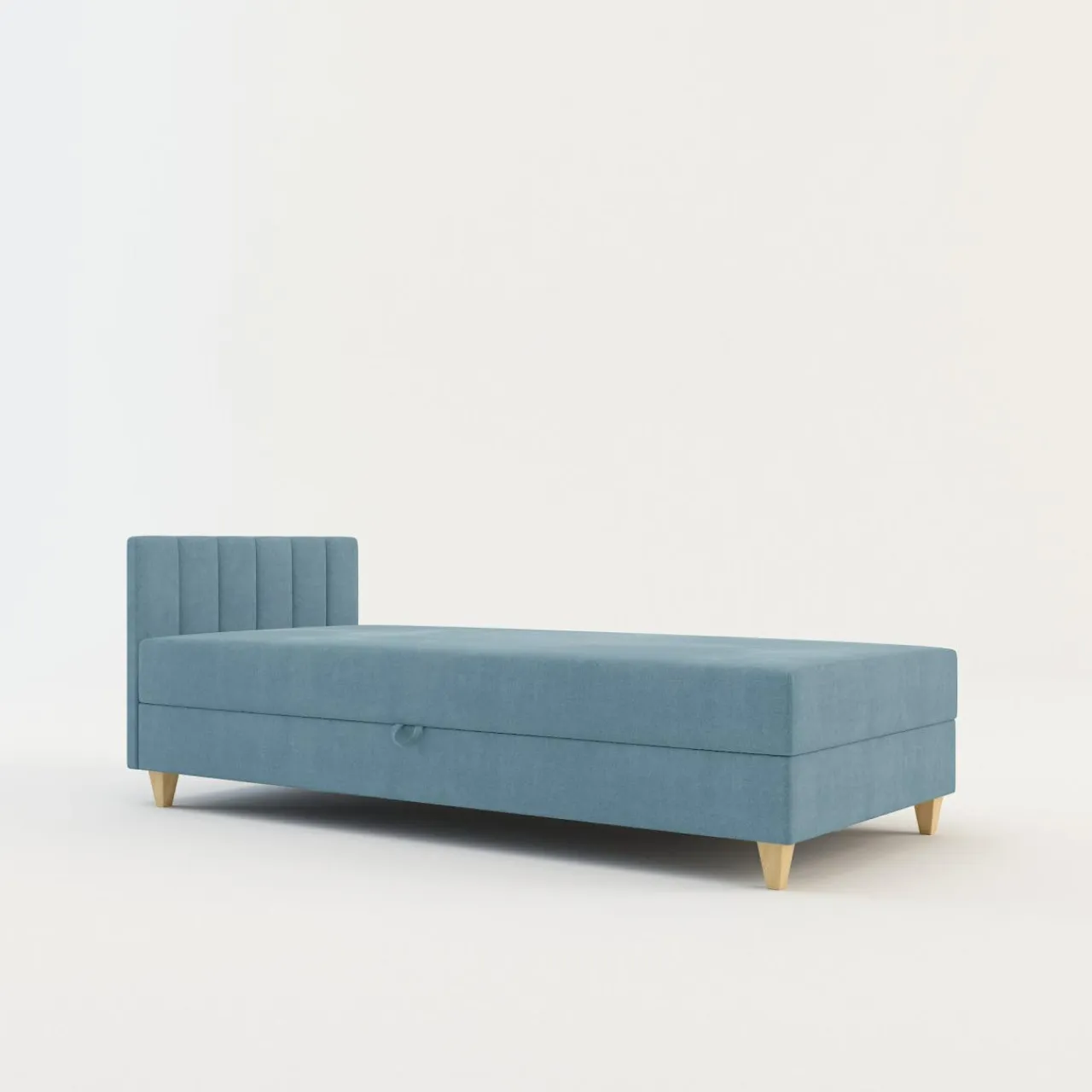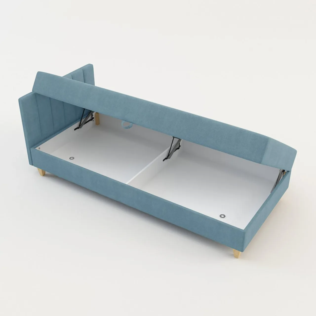 - Pod miejscem do spania znajduje się pojemnik. Przechowasz w nim pościel lub lekkie tekstylia.