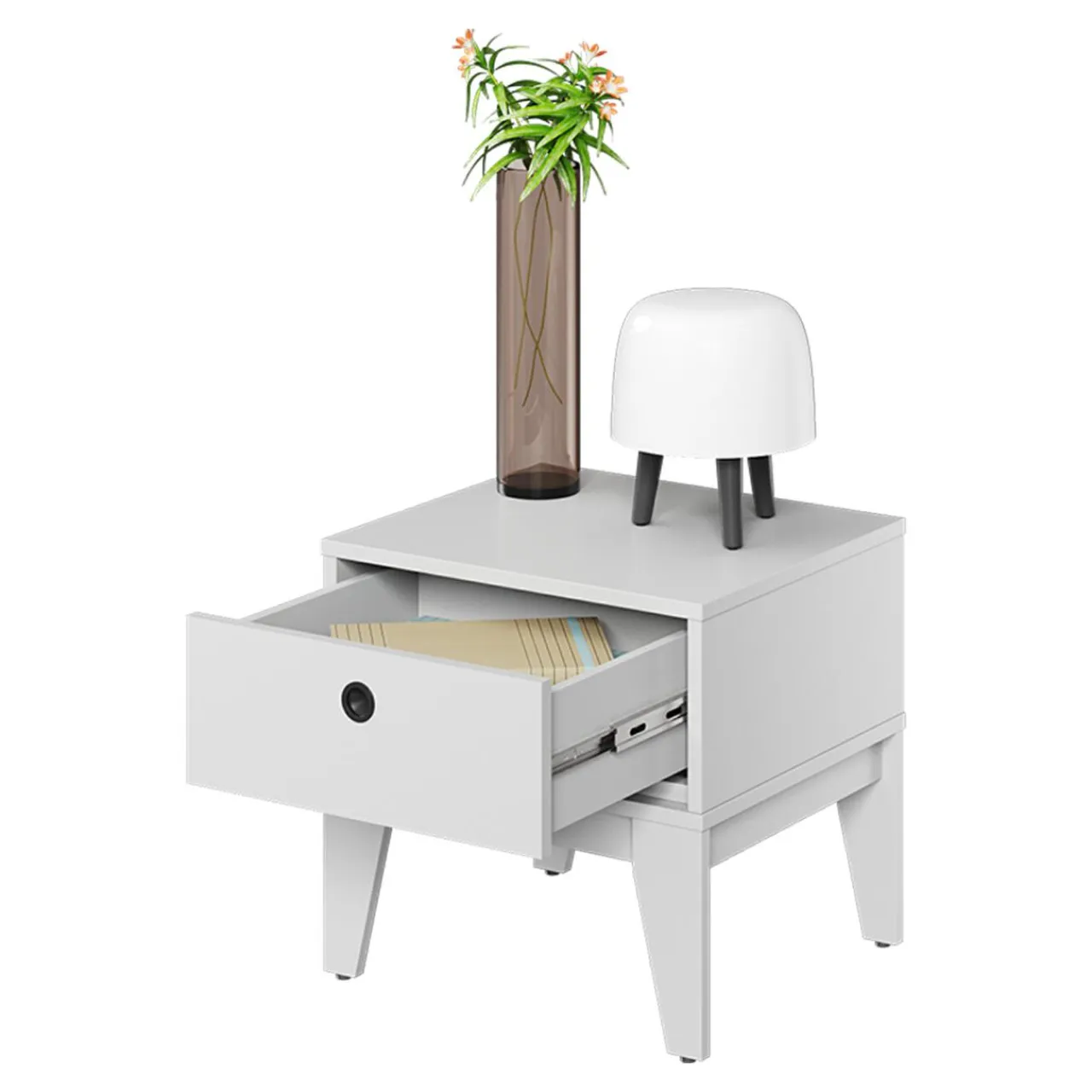 Biała szafka nocna FEMII pasuje do każdego młodzieżowego pokoju. Dobrze mieć ją po swojej stronie.