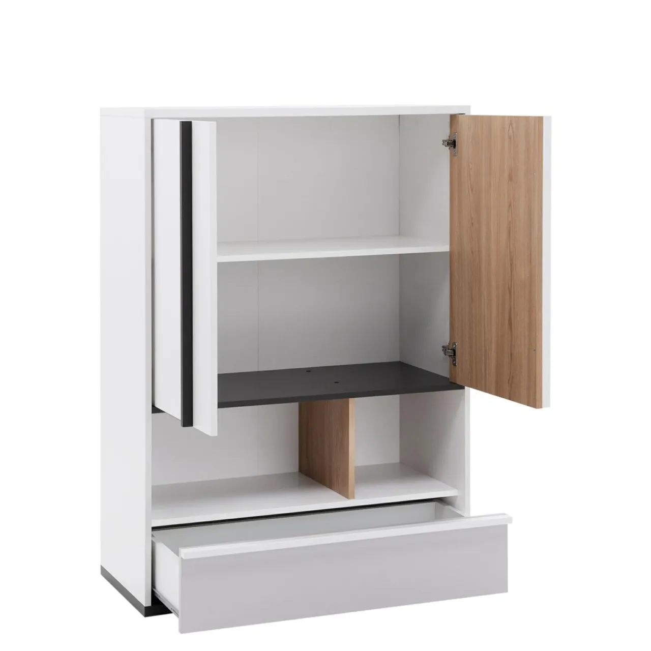 - Komoda ma 2 duże wnęki do przechowywania.
