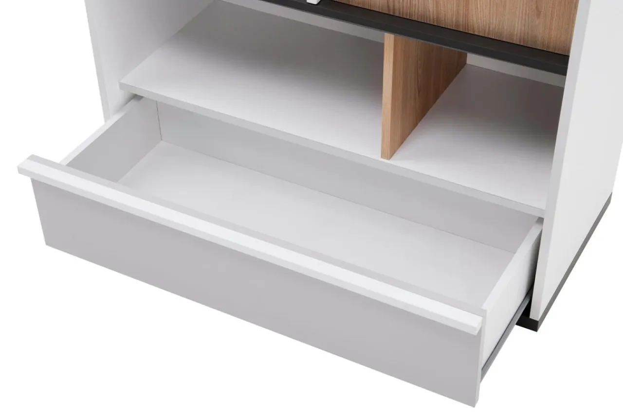 - Na dole meble jest szuflada, w której można schować przedmioty o łącznej wadze maksymalnej 3 kg.