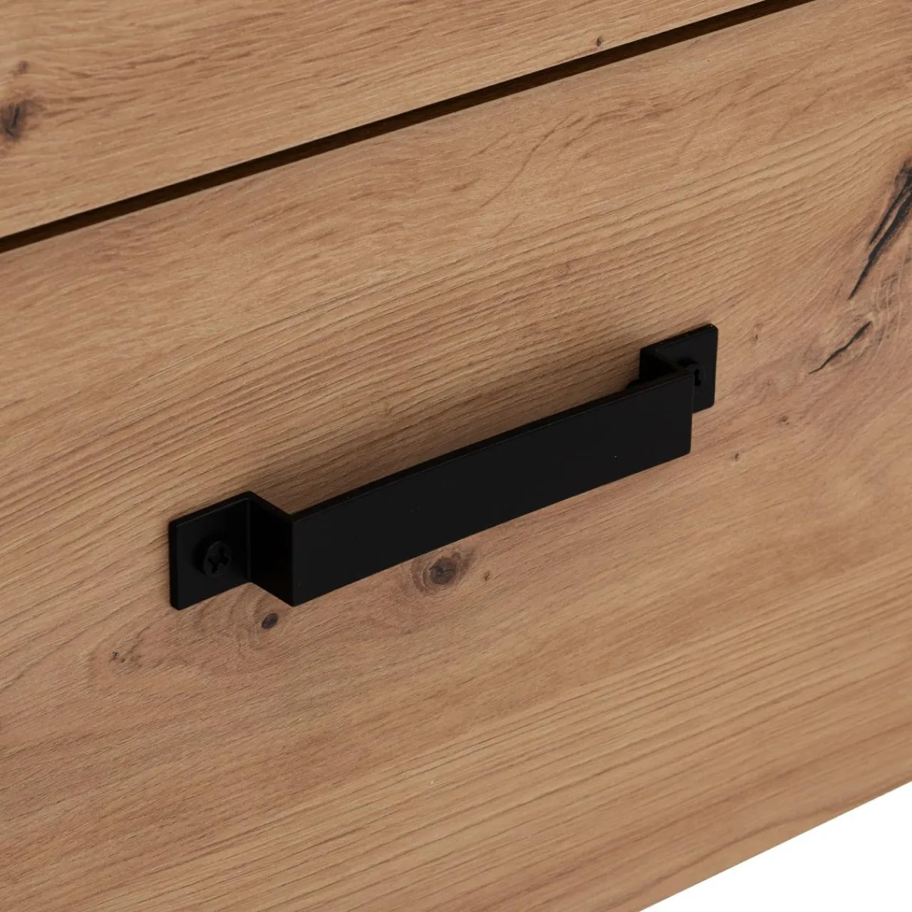 - Matowe wykończenie w połączeniu czerni z kolorem drewna idealnie pasuje do mieszkania urządzonego w industrialnym stylu.