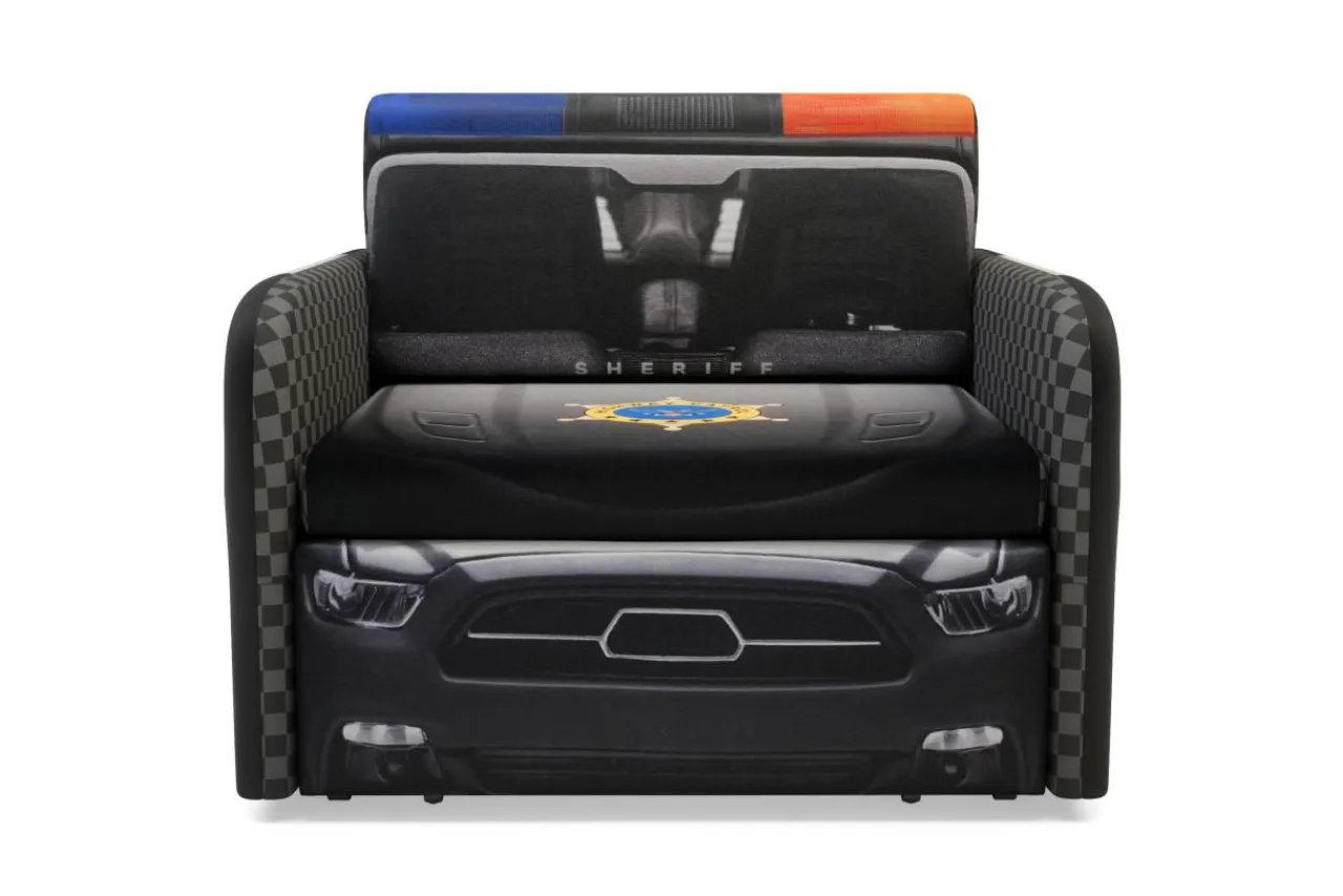 Sofa POLICE świetnie komponuje się z kolorowymi wnętrzami pokoju dziecięcego, a zastosowana w sofie tkanina jest miękka i przyjemna w dotyku.