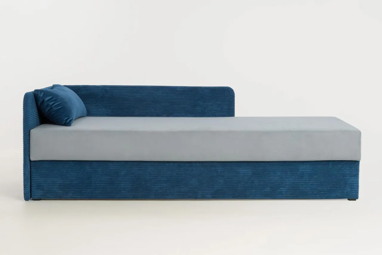 - Do tapczanu dołączona jest pluszowa poduszka w kontrastowym kolorze, która może być dekoracją albo podparciem pod głowę podczas spania.