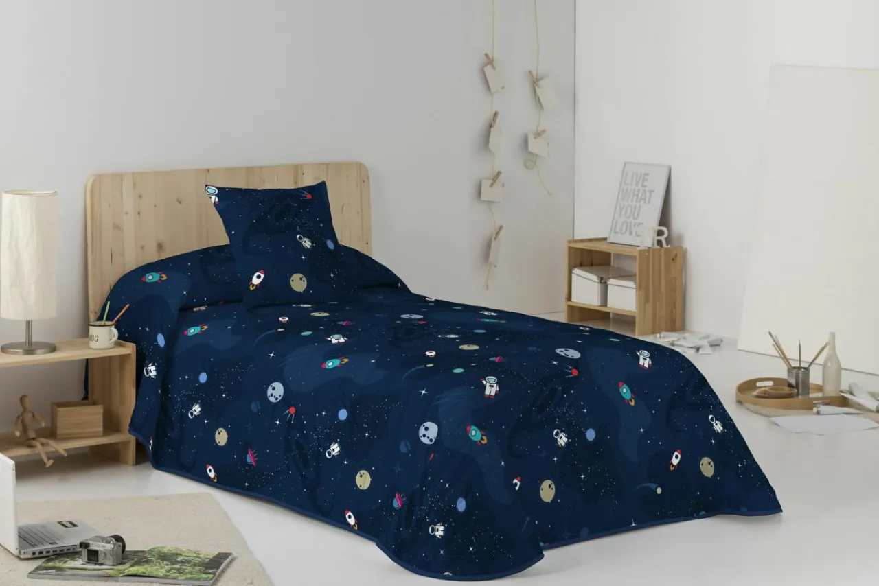 - Granatowe tło narzuty dziecięcej ROCKET pomaga wprowadzić wyciszający nastrój. Sypialnia stanie się wyłącznie miejscem wypoczynku.