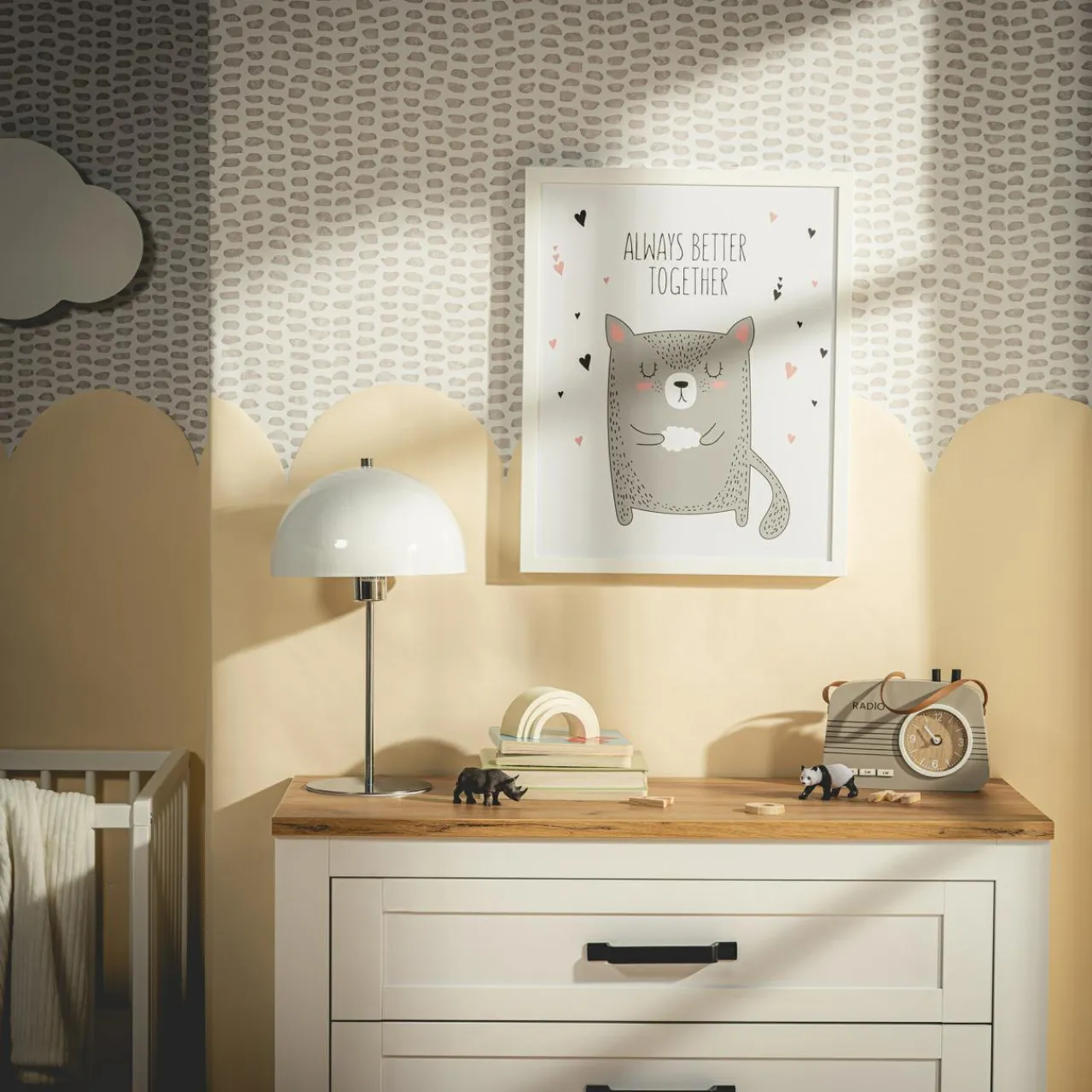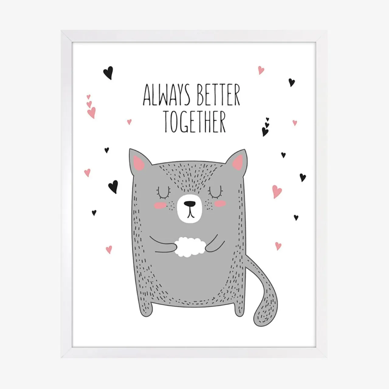 - Szare i białe odcienie działają kojąco i pasują do większości aranżacji. Raz powieszony obraz dla dziecka CAT pozostanie na dłużej, bo razem jest zawsze lepiej.