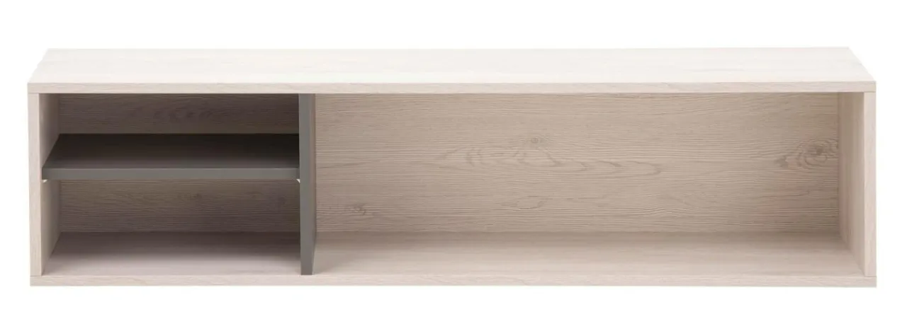 - Powierzchnię mebla pokryto laminatami w kolorach: białego dębu wilton i szarym.