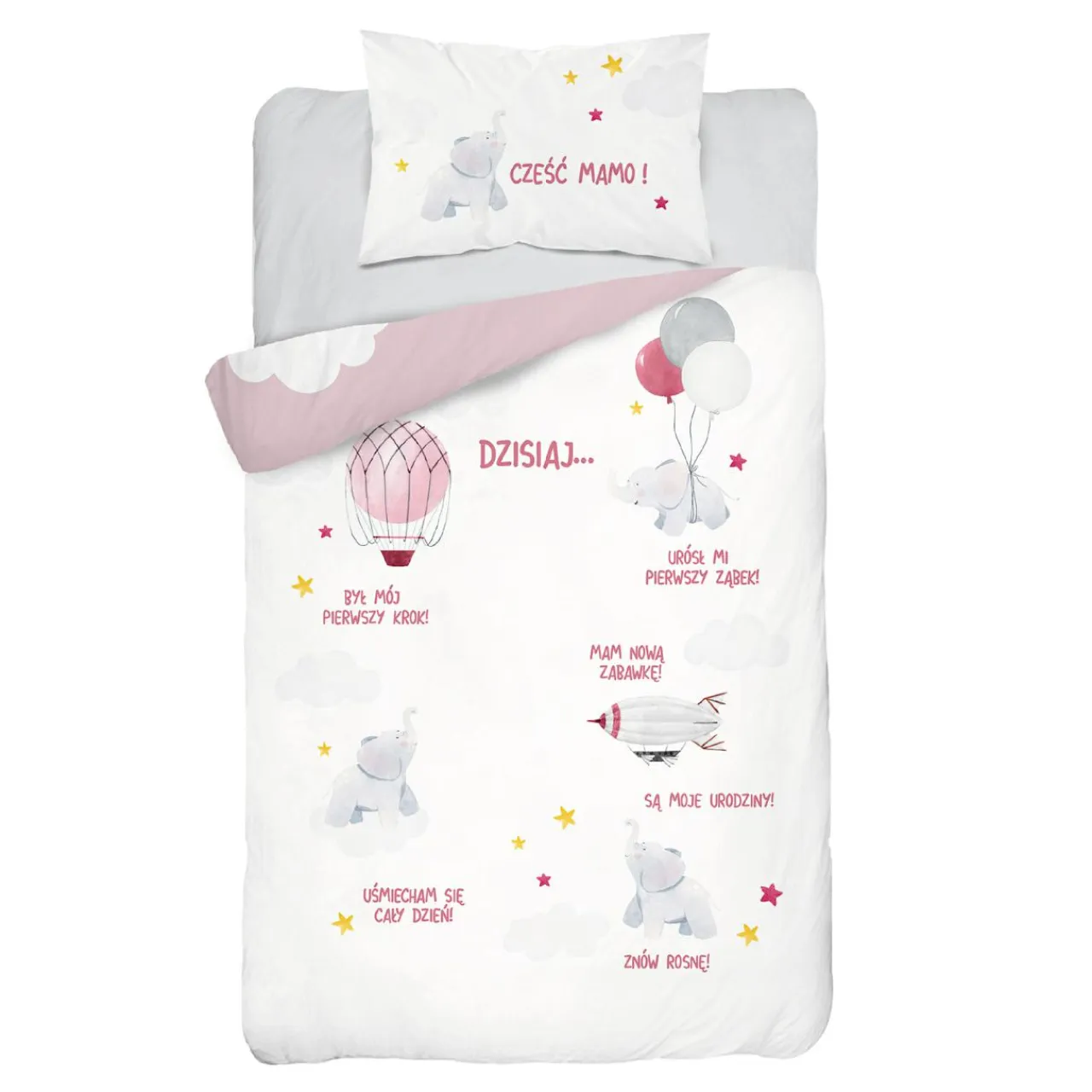 Wybierz komplet pościeli RÓŻOWY SŁOŃ wykonany z bawełny oraz włókna bambusowego, który zapewni Twojemu dziecku dodatkową ochronę przed gorącem w lecie, oraz zimnem w zimie.