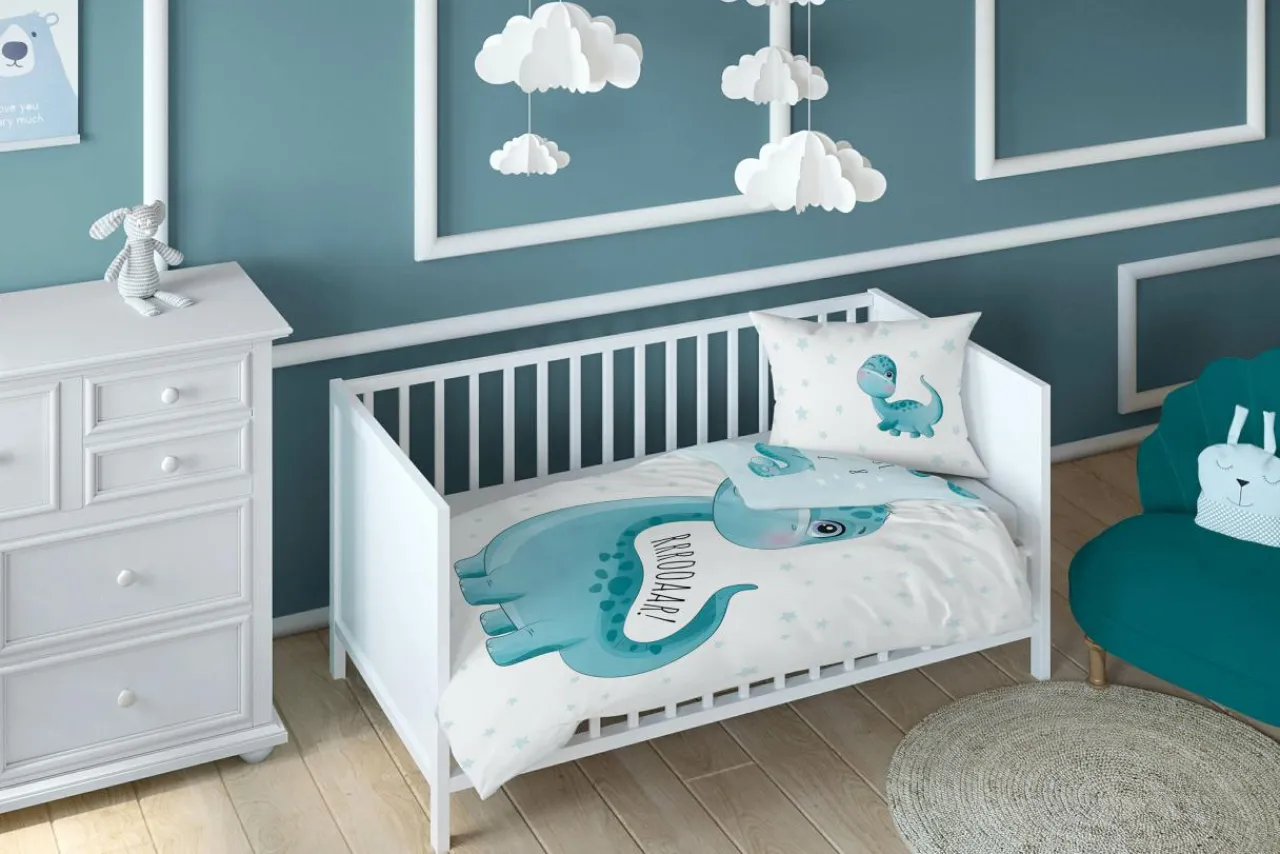 - Młody użytkownik lub użytkowniczka pościeli z pewnością docenią uroczy motyw dinozaura, który zachęca do położenia się do łóżka, by śnić o samych przyjemnych rzeczach;