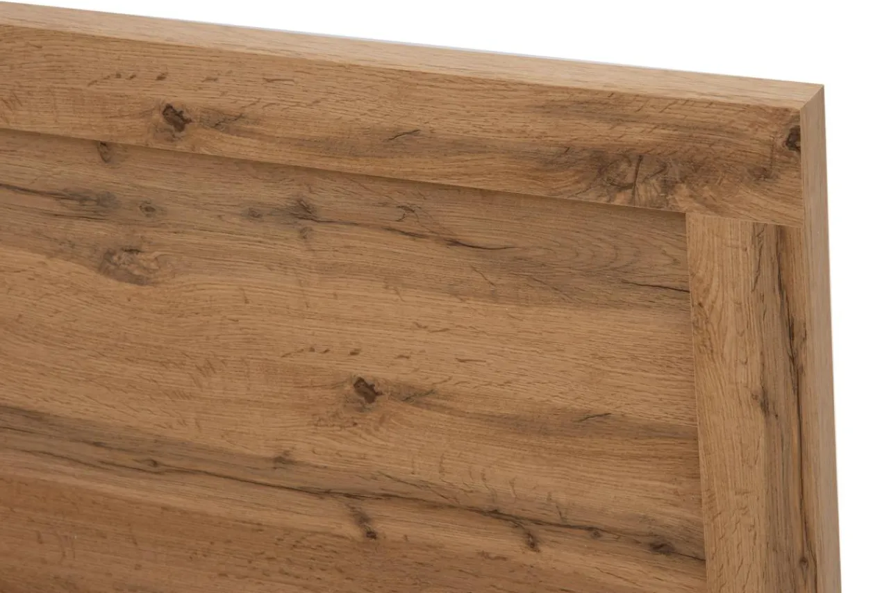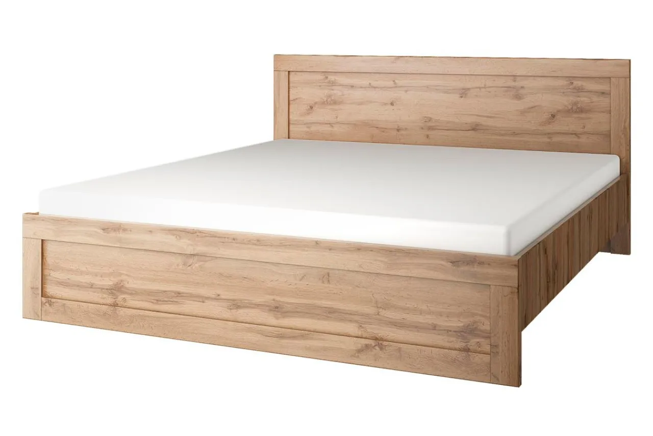 - Wezgłowie łóżka zostało wzbogacone o charakterystyczną ramkę, która nadaje bryle łóżka masywny wygląd.