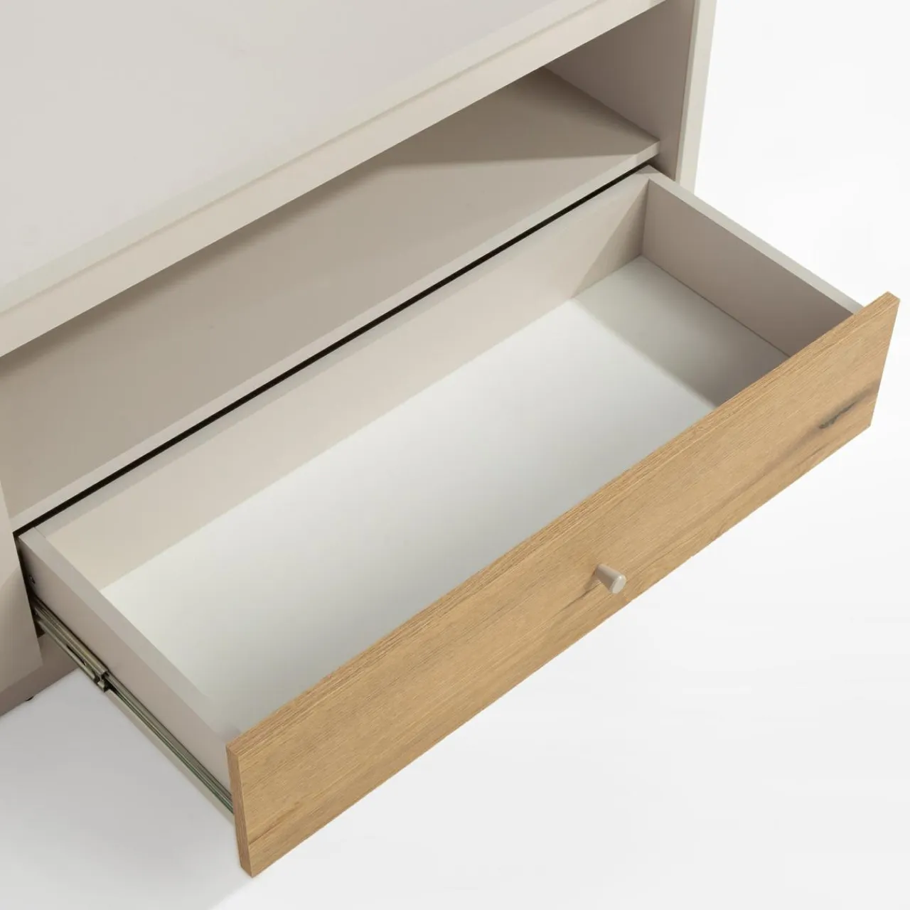 - Szuflada pozwala na dyskretne przechowywanie drobniejszych akcesoriów, takich jak piloty, kable i instrukcje.