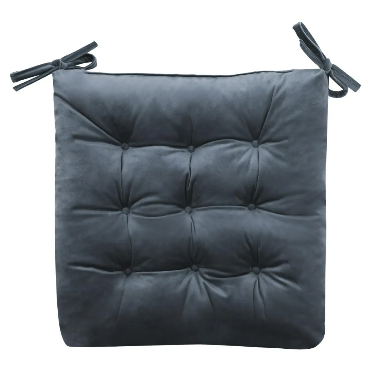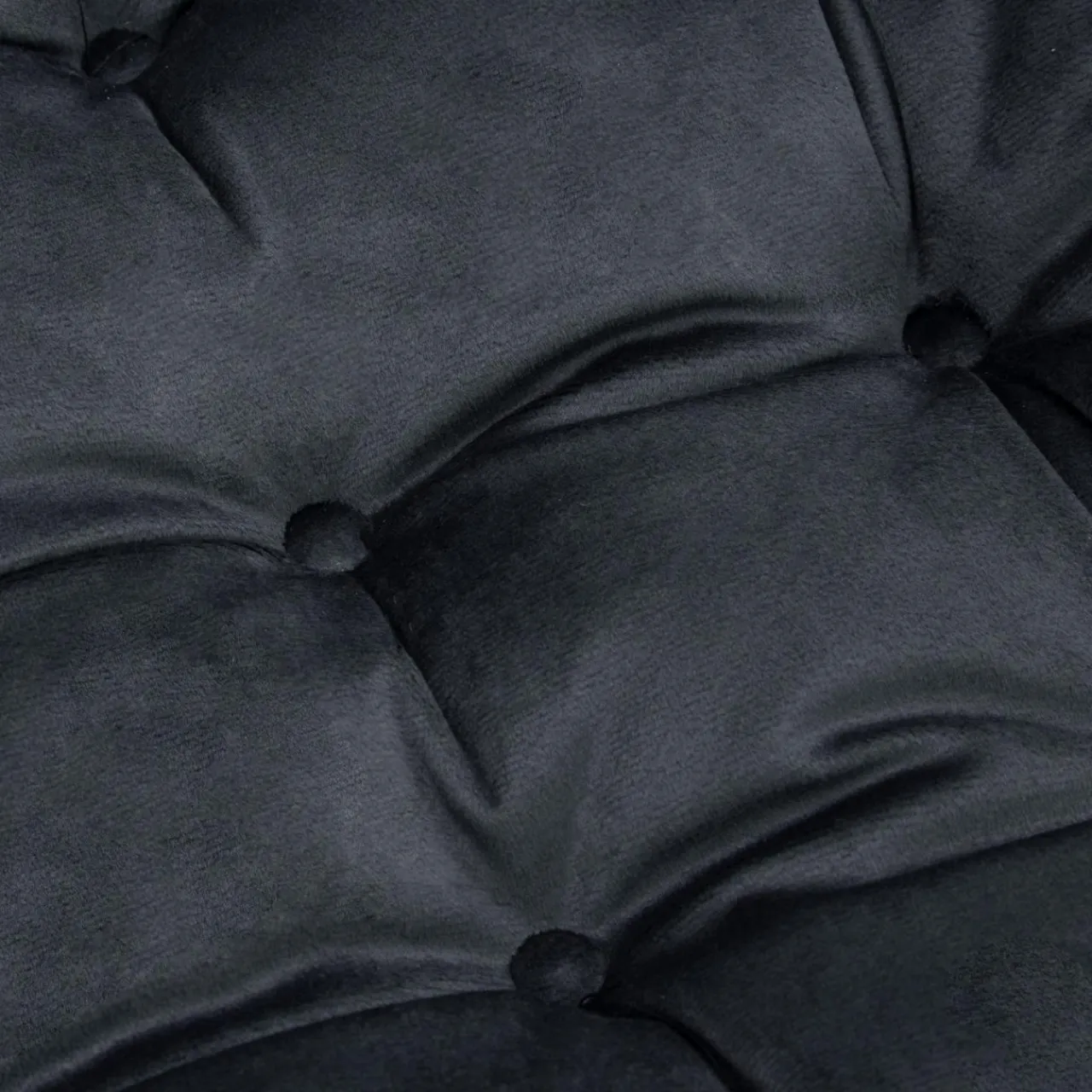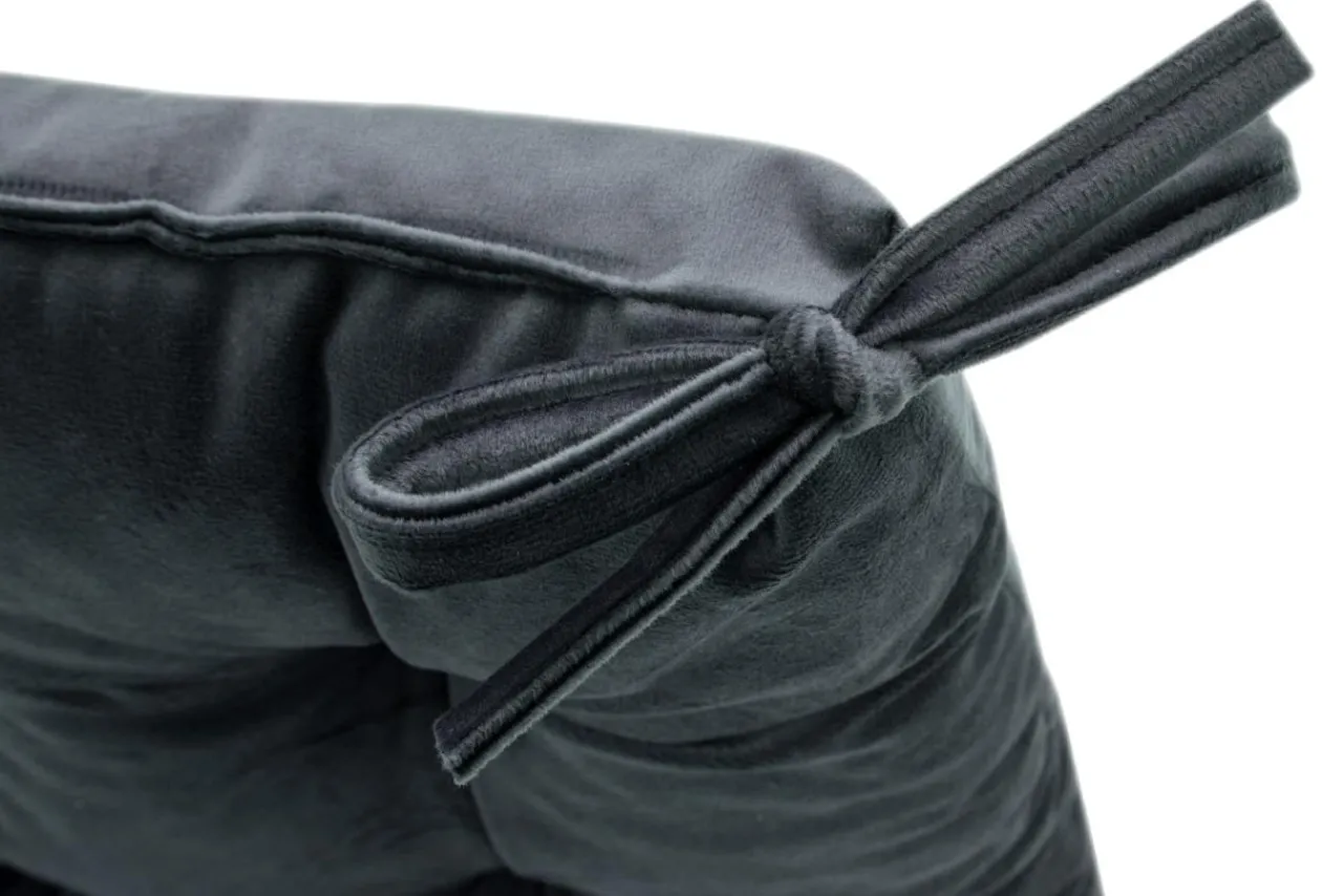 Estetyczne pikowanie i elegancka, welurowa tkanina w ciemnoszarym kolorze urozmaicą aranżację kuchni, jadalni czy pokoju dziennego.