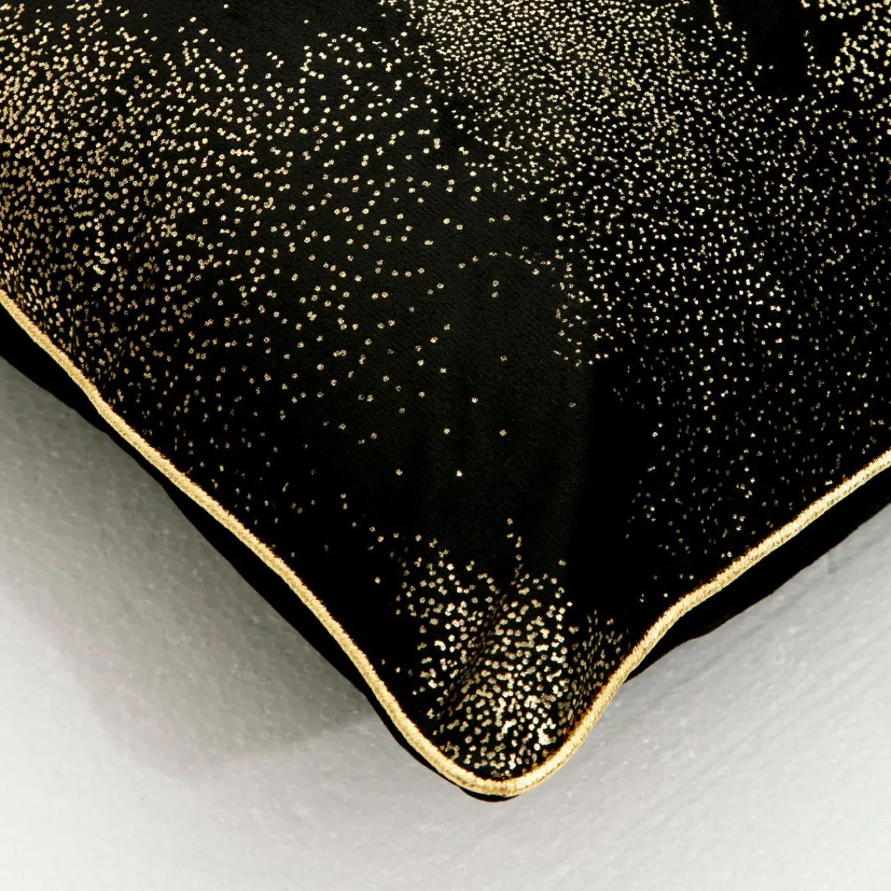 Czarna poszewka ozdobiona brokatowym nadrukiem lasu będzie pasować do Twojego salonu na co dzień i od święta.