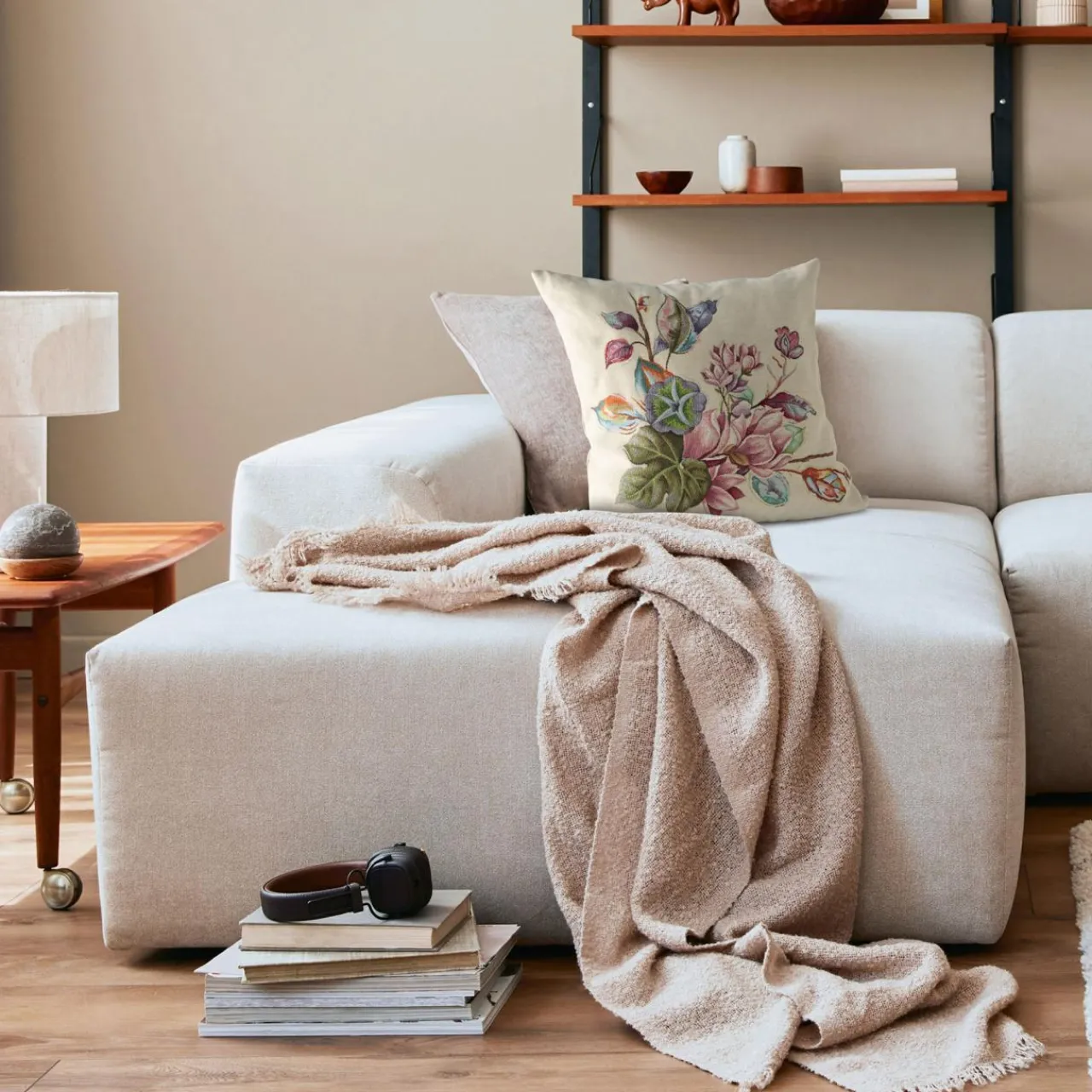 - Jest wykonana z grubej tkaniny ozdobiona barwnym kwiatowym wzorem. Będzie pasować do wnętrza w stylu retro, ale także ciekawie zaprezentuje się w pokoju rustykalnym.