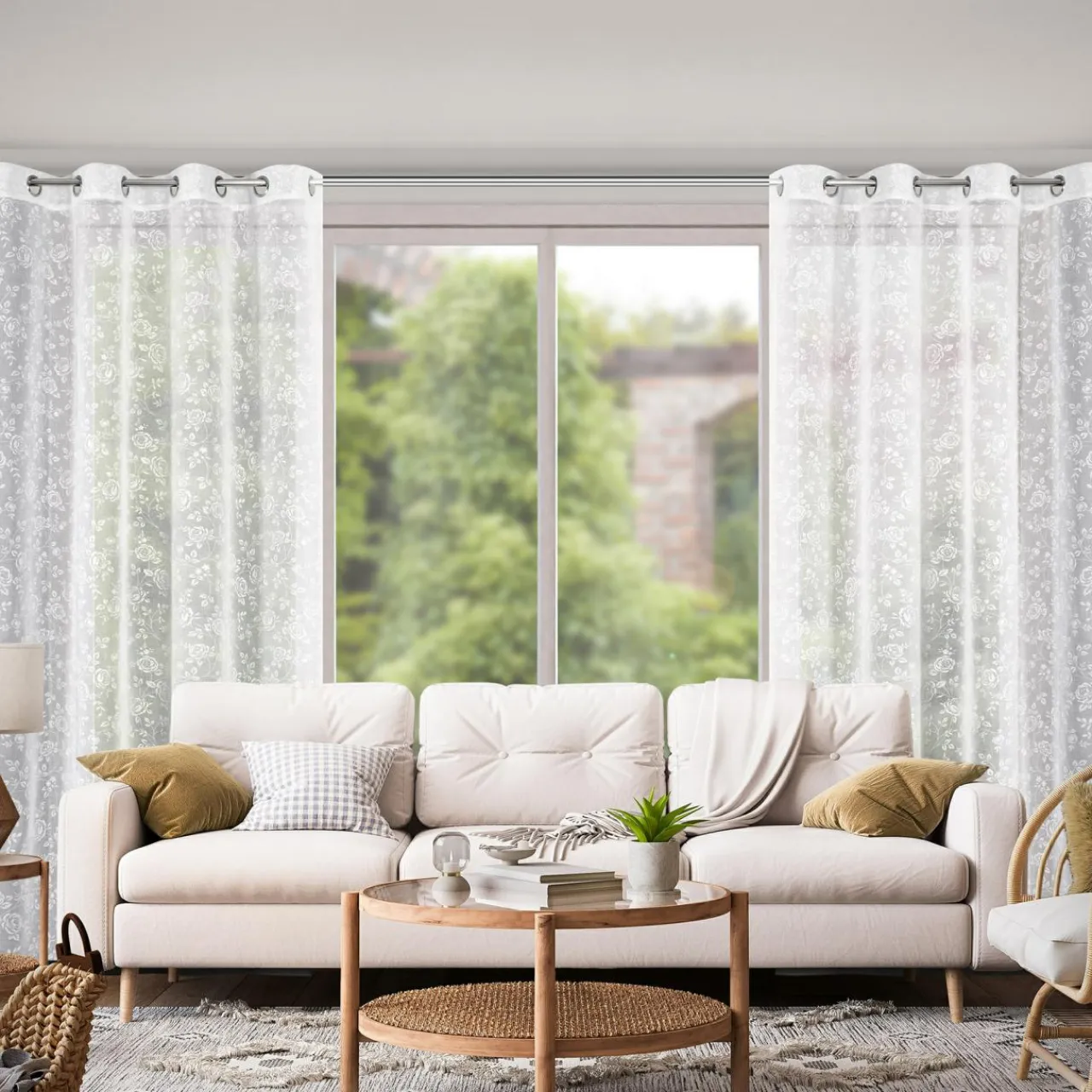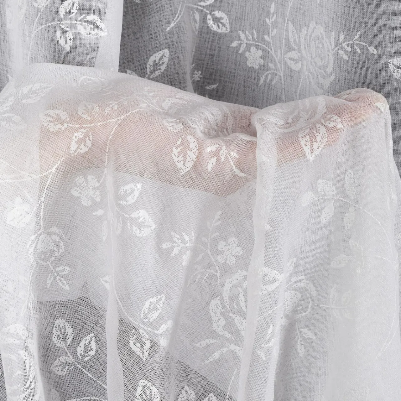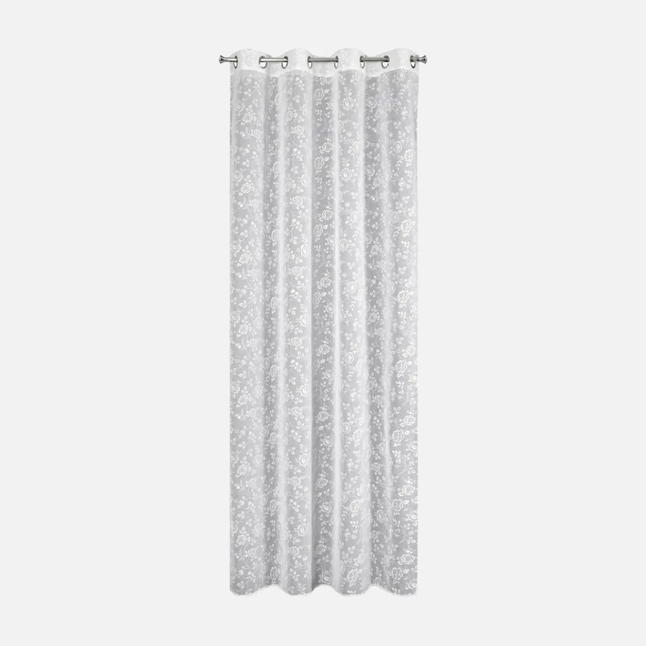 Biała zasłona na przelotkach HOLLY udekoruje Twój salon lub sypialnię. Roślinny wzór doda wnętrzu subtelności.