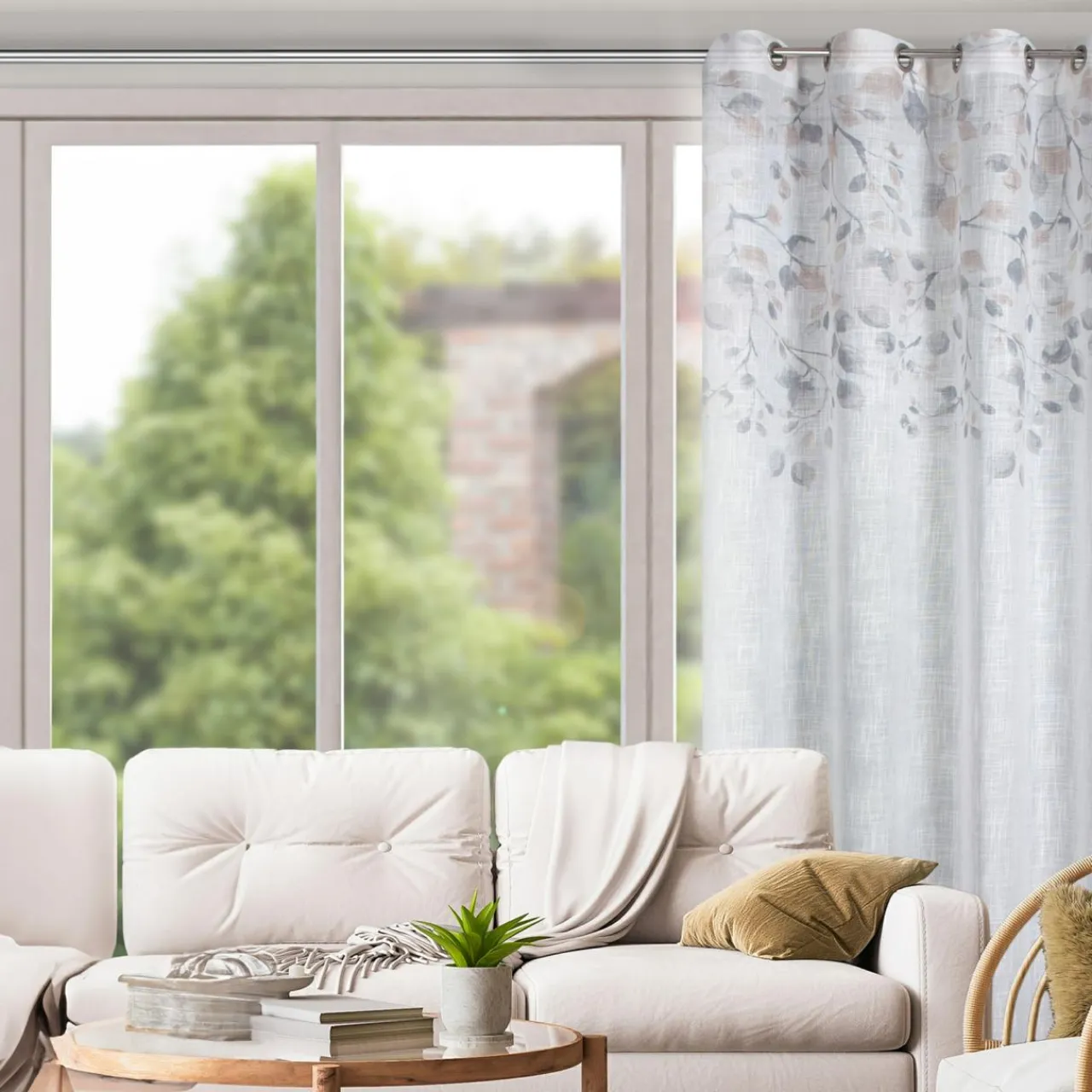 Zasłona na przelotkach ANA z roślinnym motywem udekoruje wnętrze.