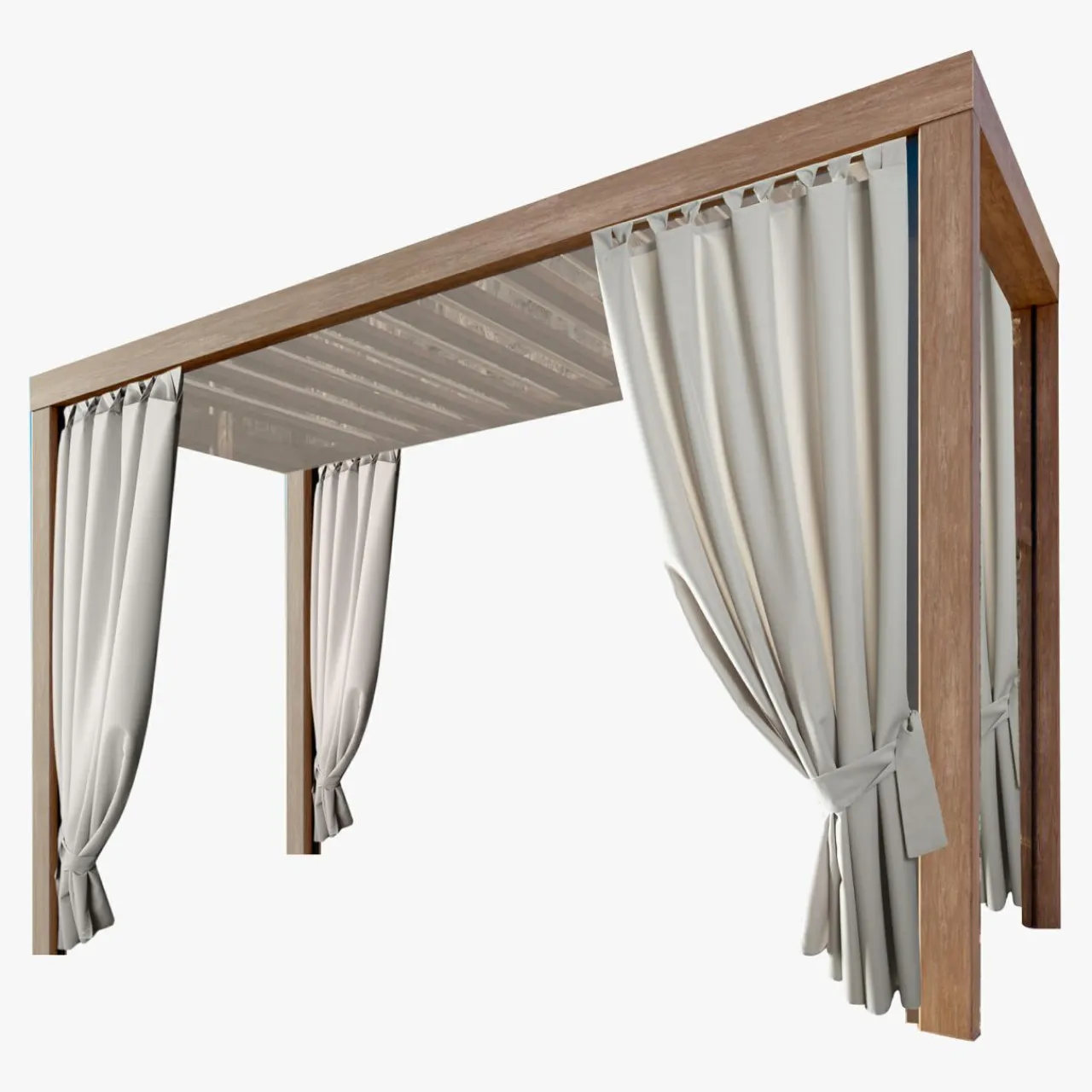 - Jasnobeżowa zasłona GARDEN podkreśli wyciszającą i harmonijną aranżację. Pasuje do zestawu drewnianych mebli ogrodowych.