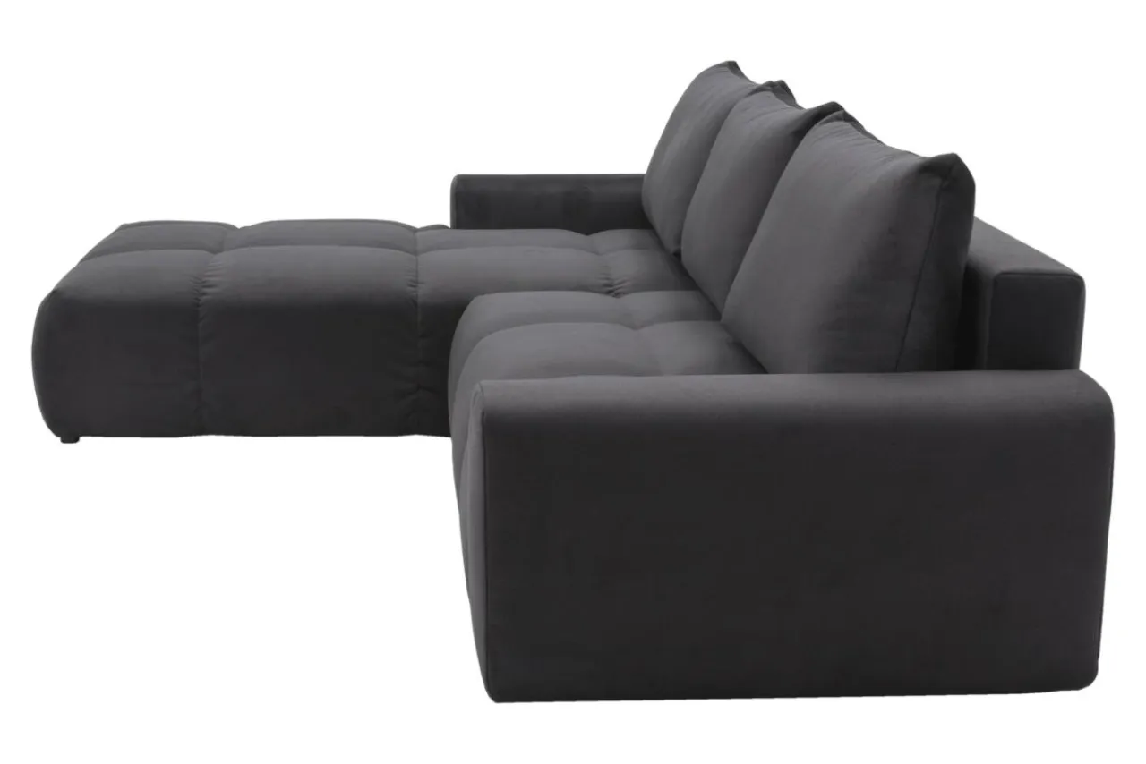 - Welurowa tkanina ELEMENT, którą obito narożnik, jest miękka w dotyku i posiada właściwości water blocked.