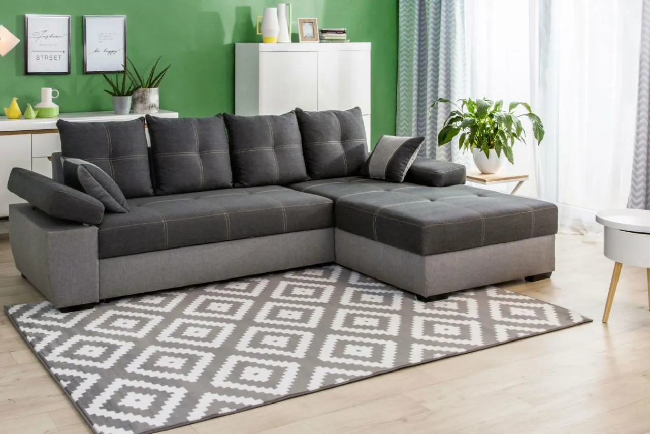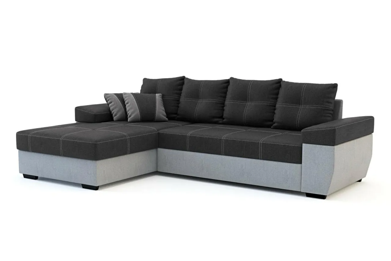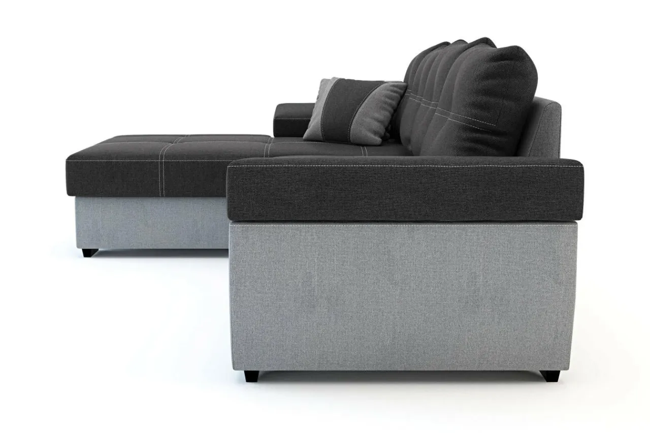 Rozłożysty narożnik LARGO to dobry wybór do obszernego salonu. Nowoczesny styl mebla i ciekawe kontrastowe przeszycia pozwolą każdego dnia cieszyć się wspaniałym wnętrzem i sprawić, że mebel będzie zwracał na siebie uwagę. Tapicerka w ciemnej i jasnej szarości z kontrastowymi nićmi na siedzisku i poduszkach oraz dwoma poduszkami dekoracyjnymi to charakterystyczna cecha tego modelu.